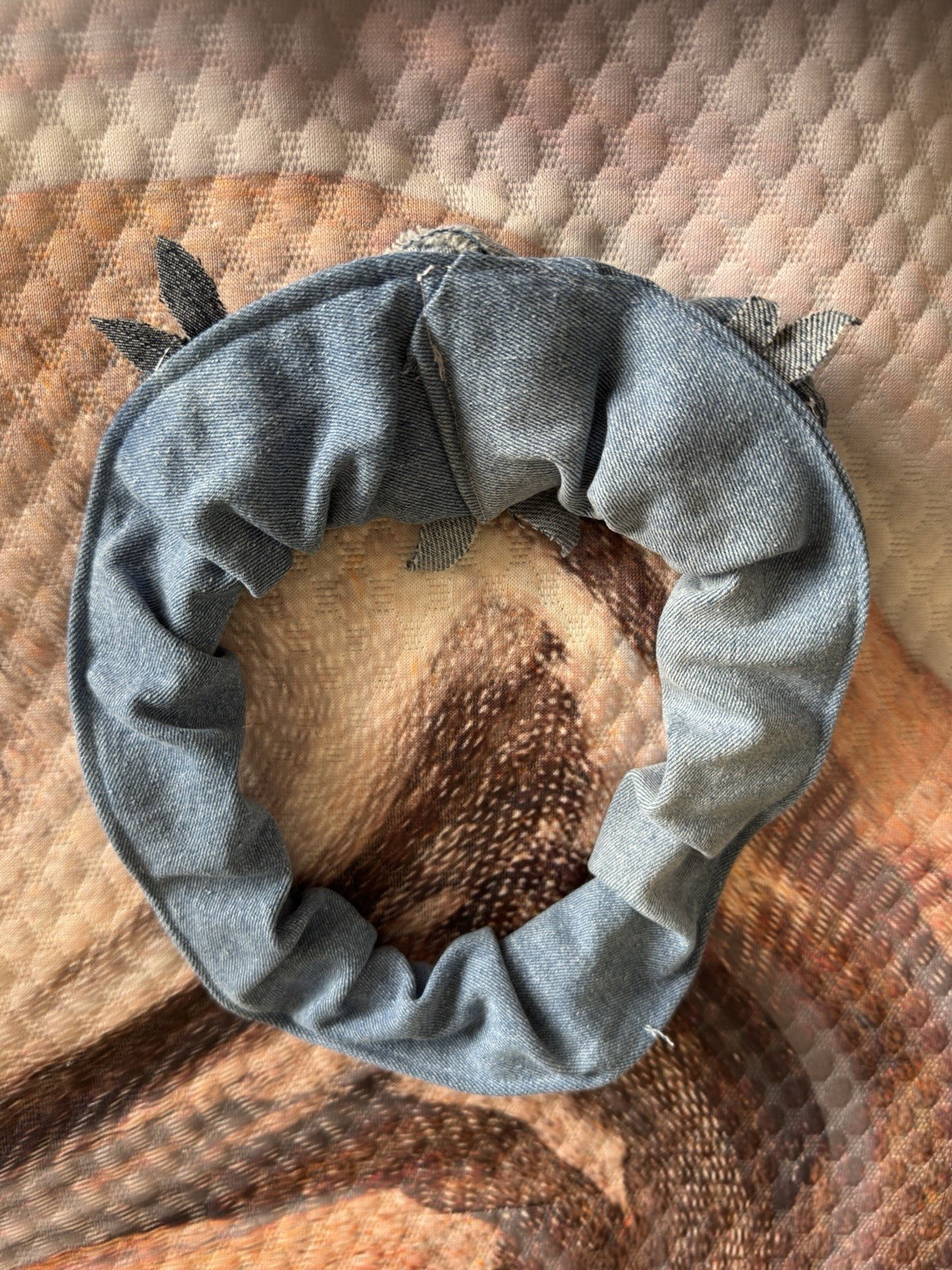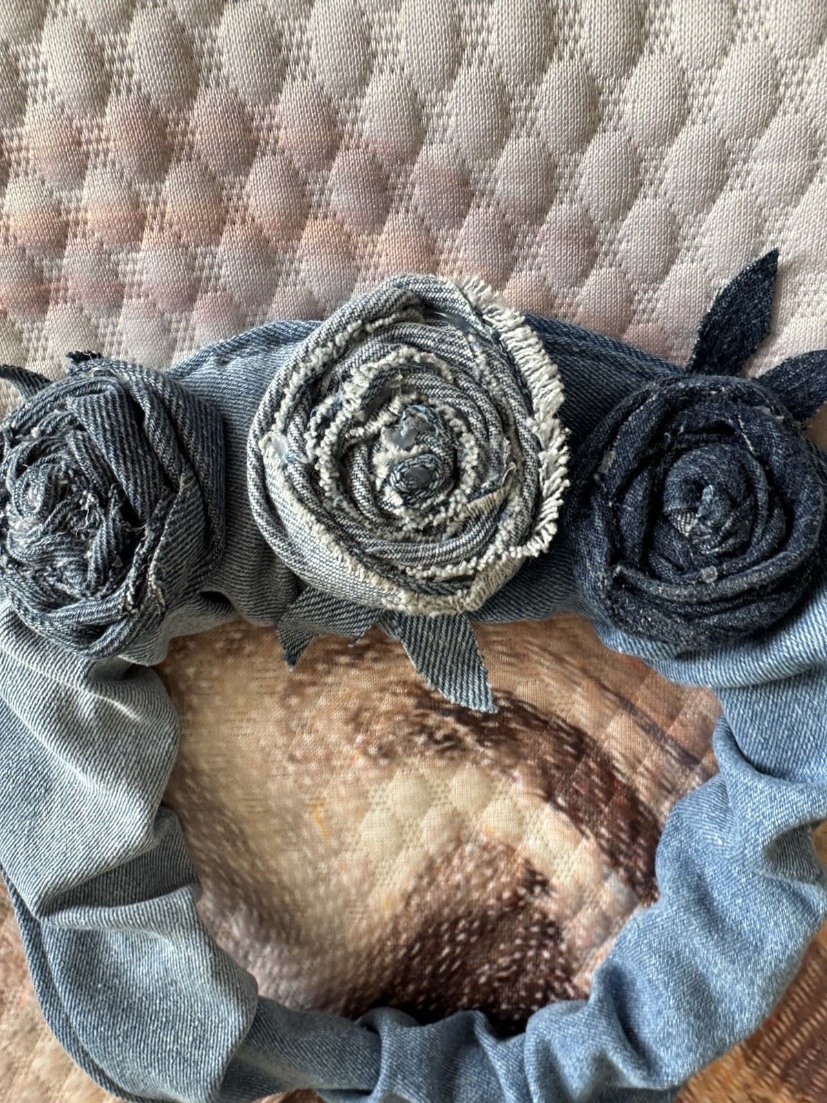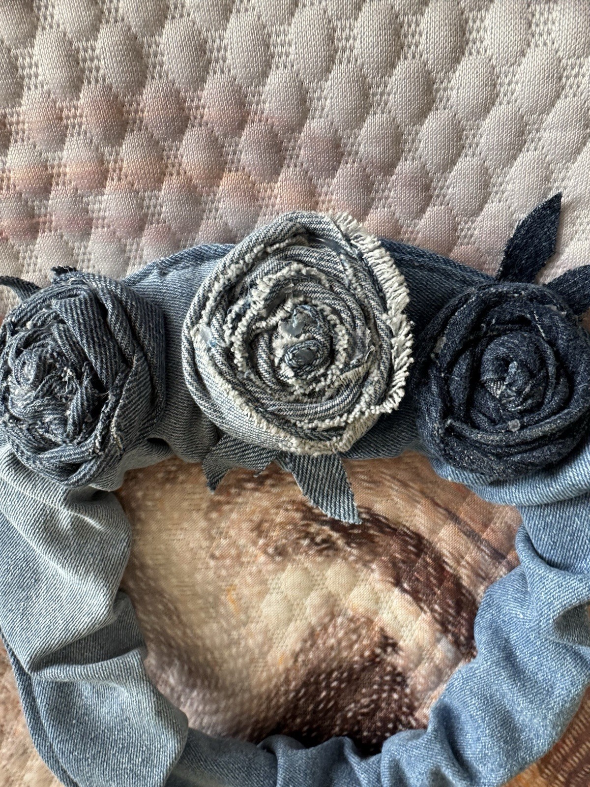 Upcycled Flower Rustic Denim Roses on Upcycled Denim stretch Headband