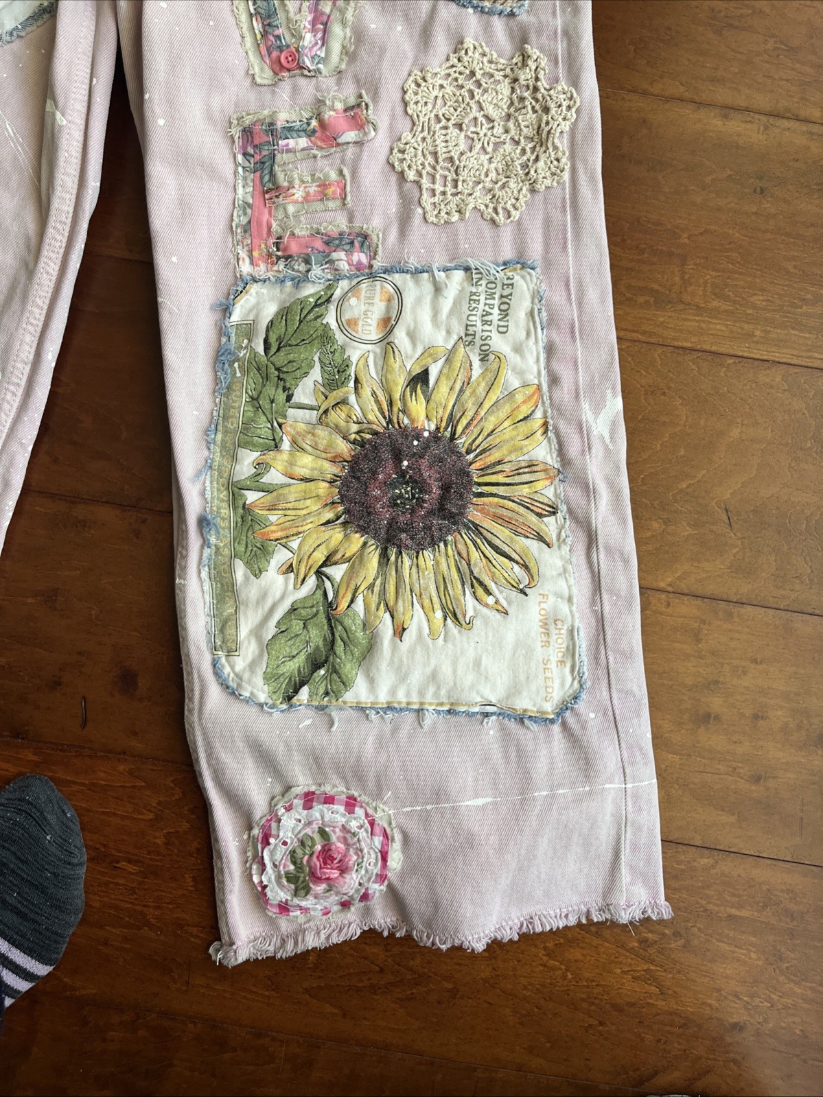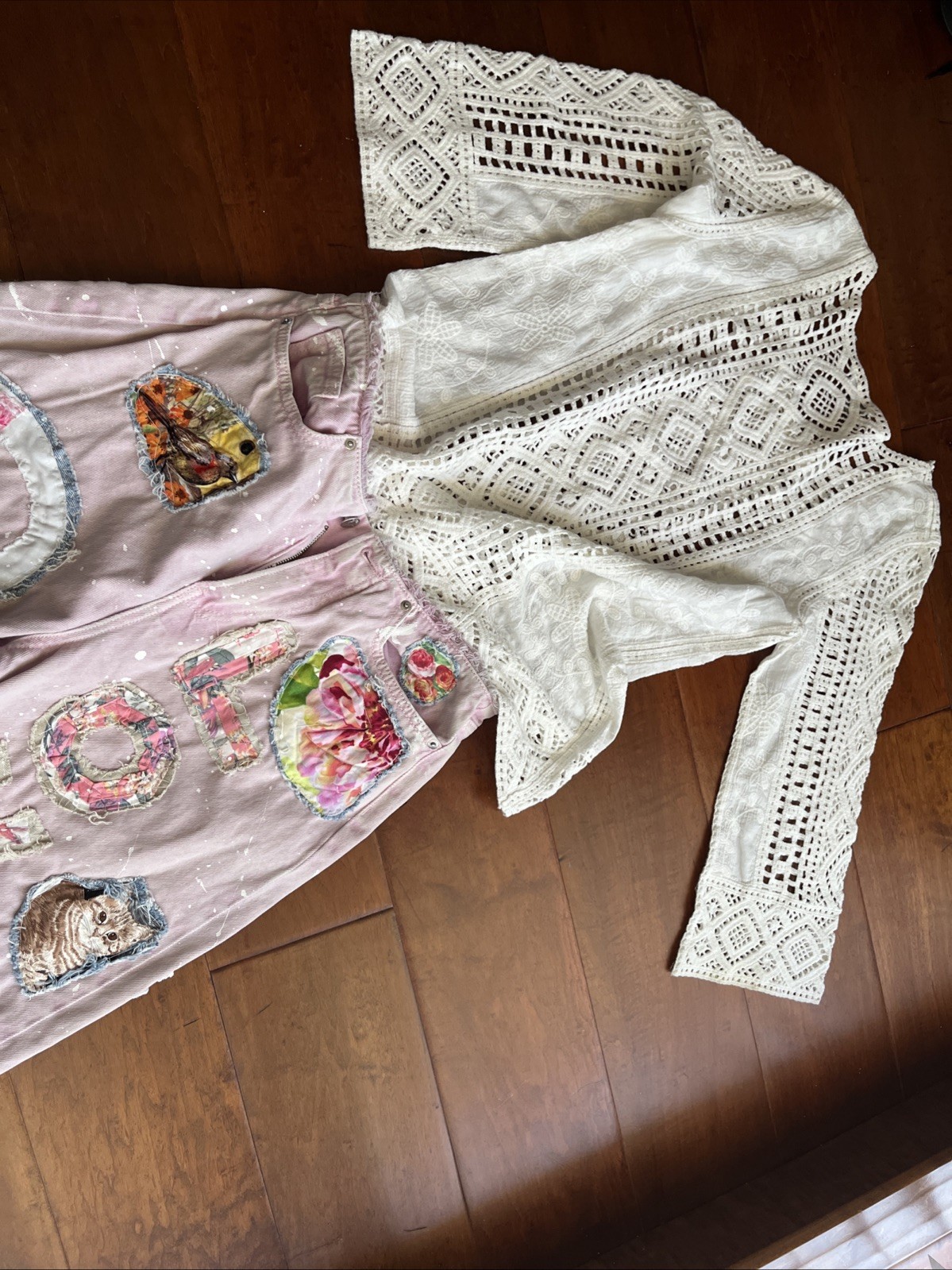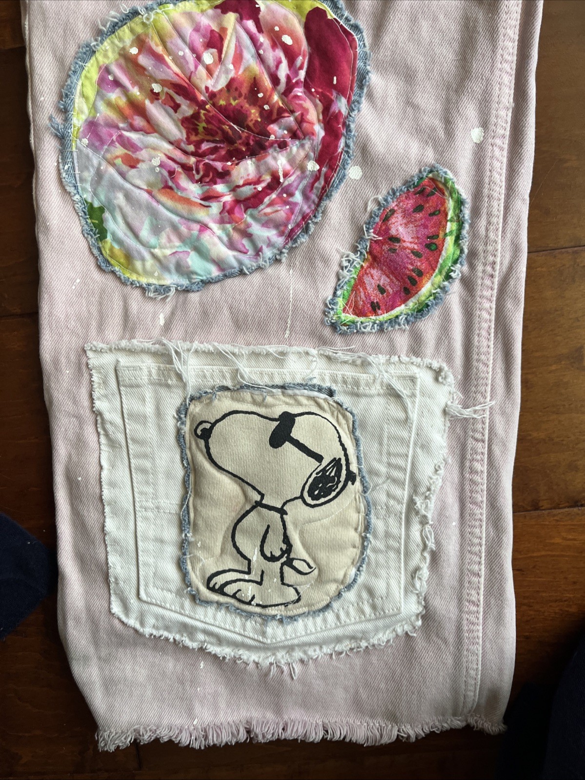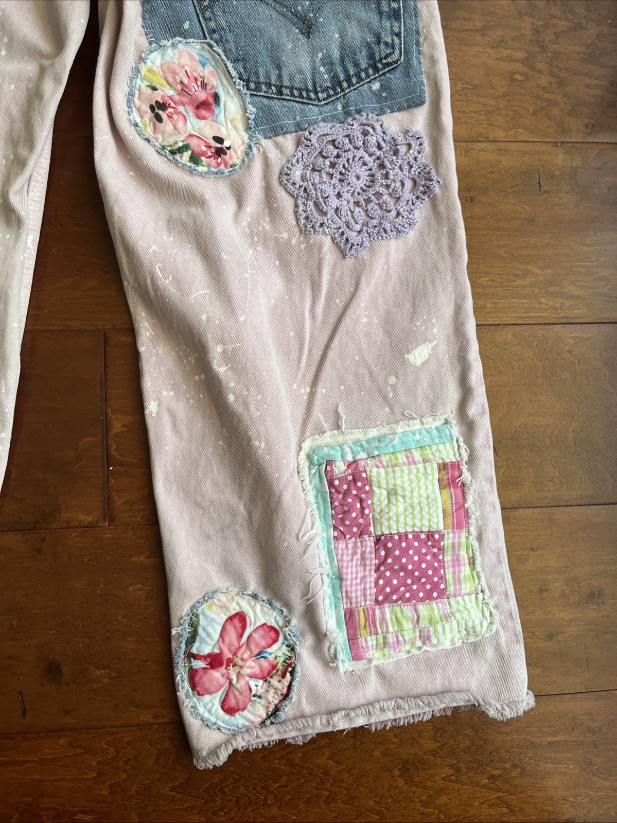 Artsy Upcycled Size 6 Pink Hippie Jeans Patchwork Pearl Woodstock 8 Pockets