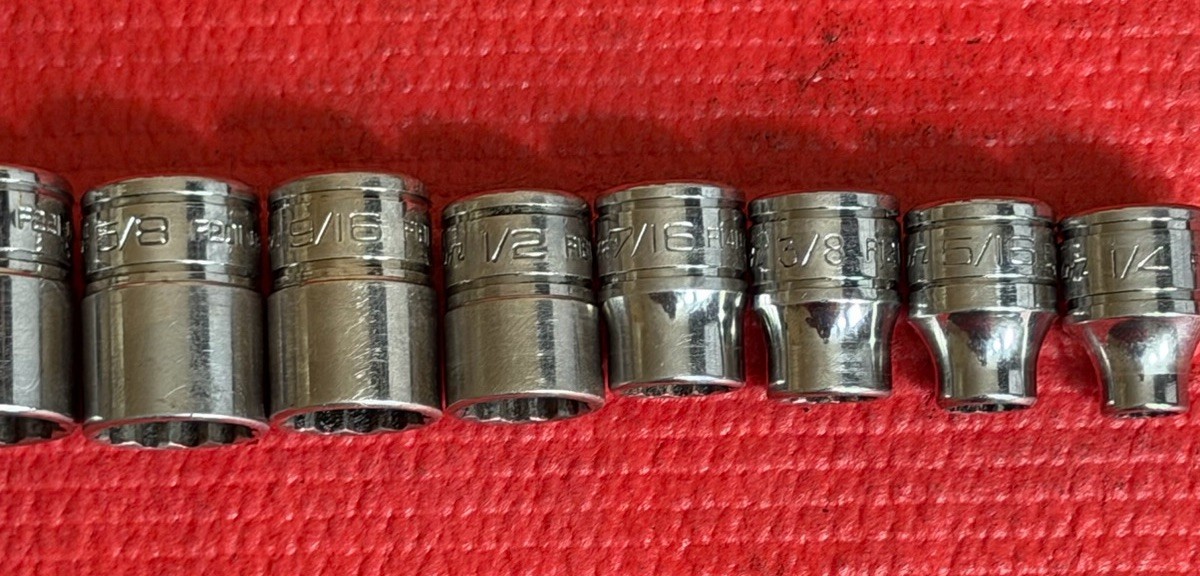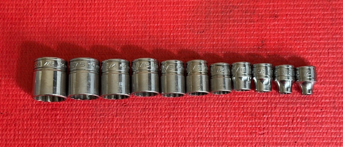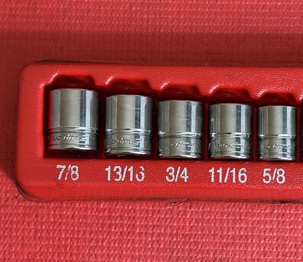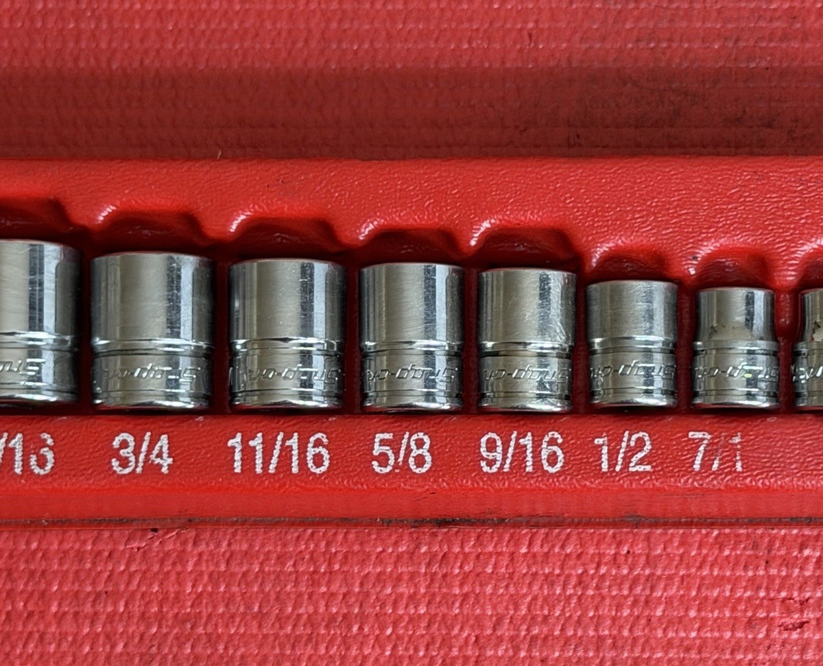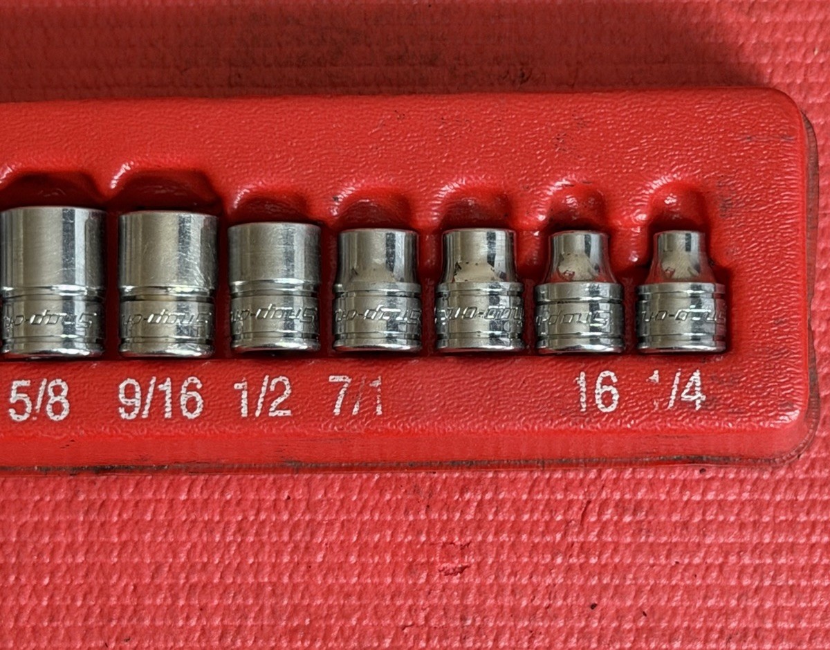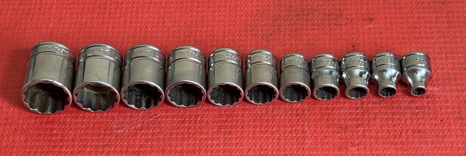 Snap-on Tools 11 Pc 3/8" Drive 12-Point SAE Shallow Chrome Socket Set 211FY