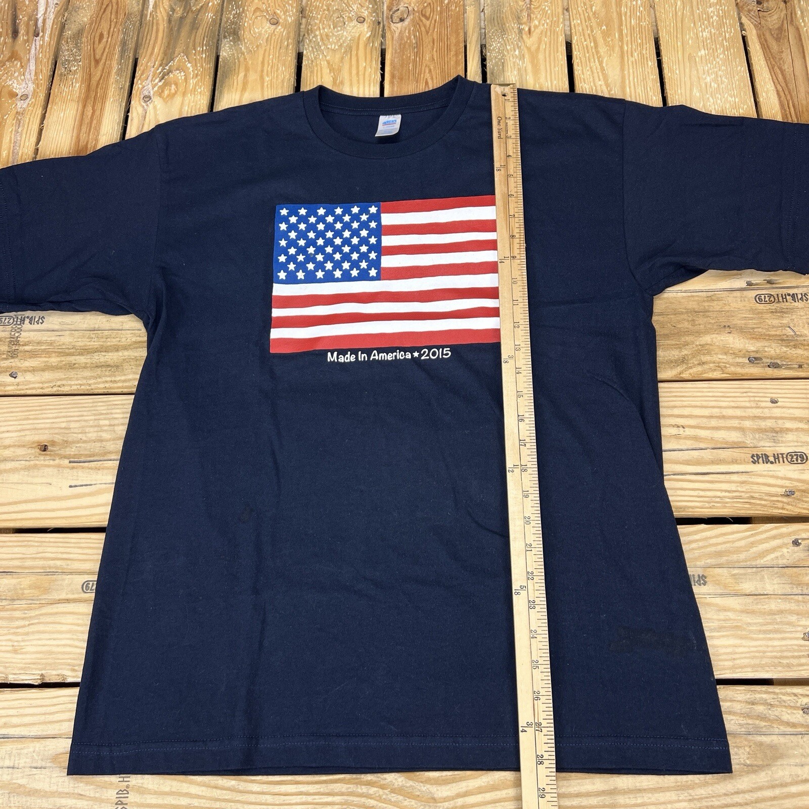 Made In America 2015 Navy Blue T Shirt Flag Made in the USA Men's Large