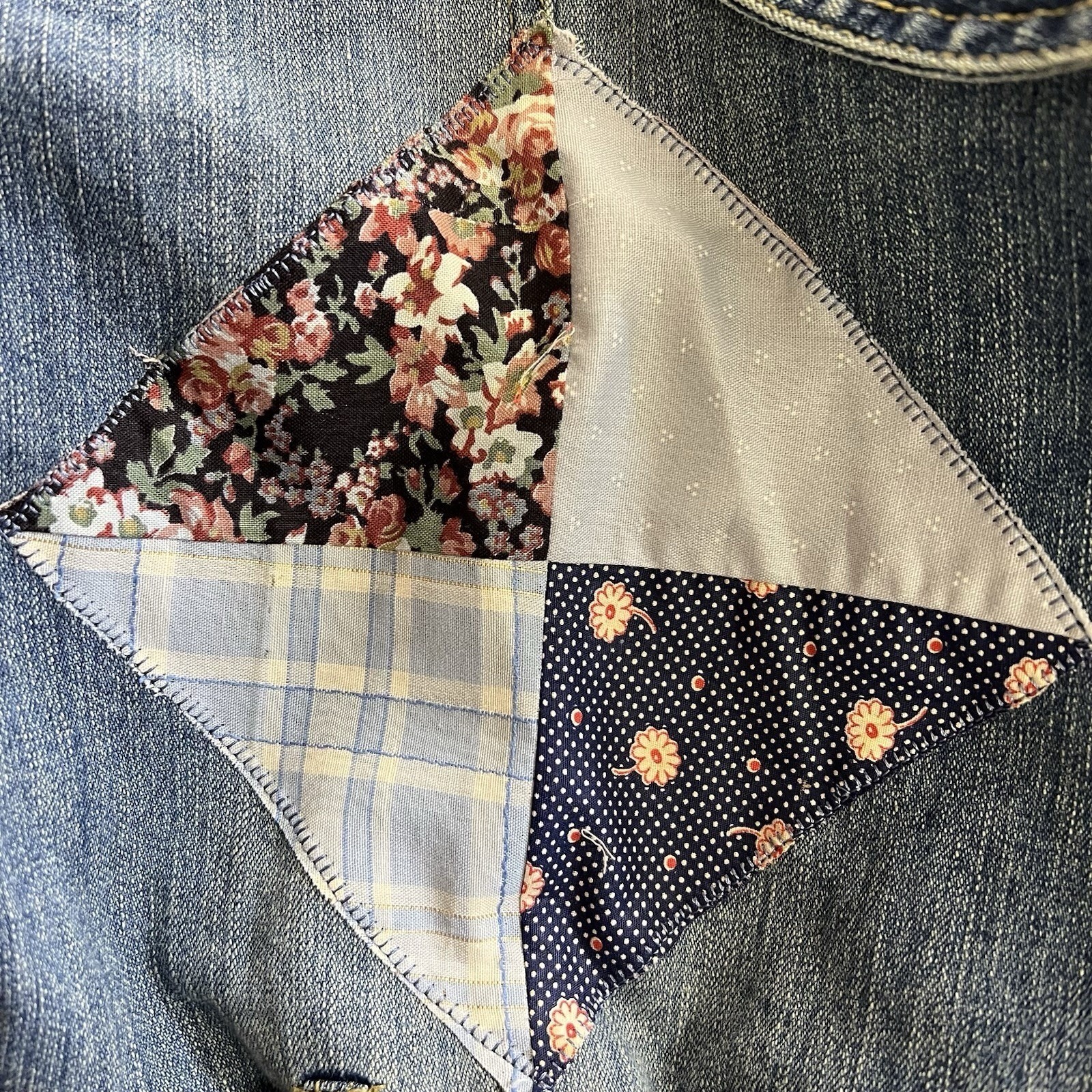 Keywords: Boho, Artisan, Patchwork, Quilt, Denim Jacket, Plus Size, Cottagecore, Upcycled Style, Hippie, Western, Casual, Layering, Ramie Blend, Star Quilt, Unique