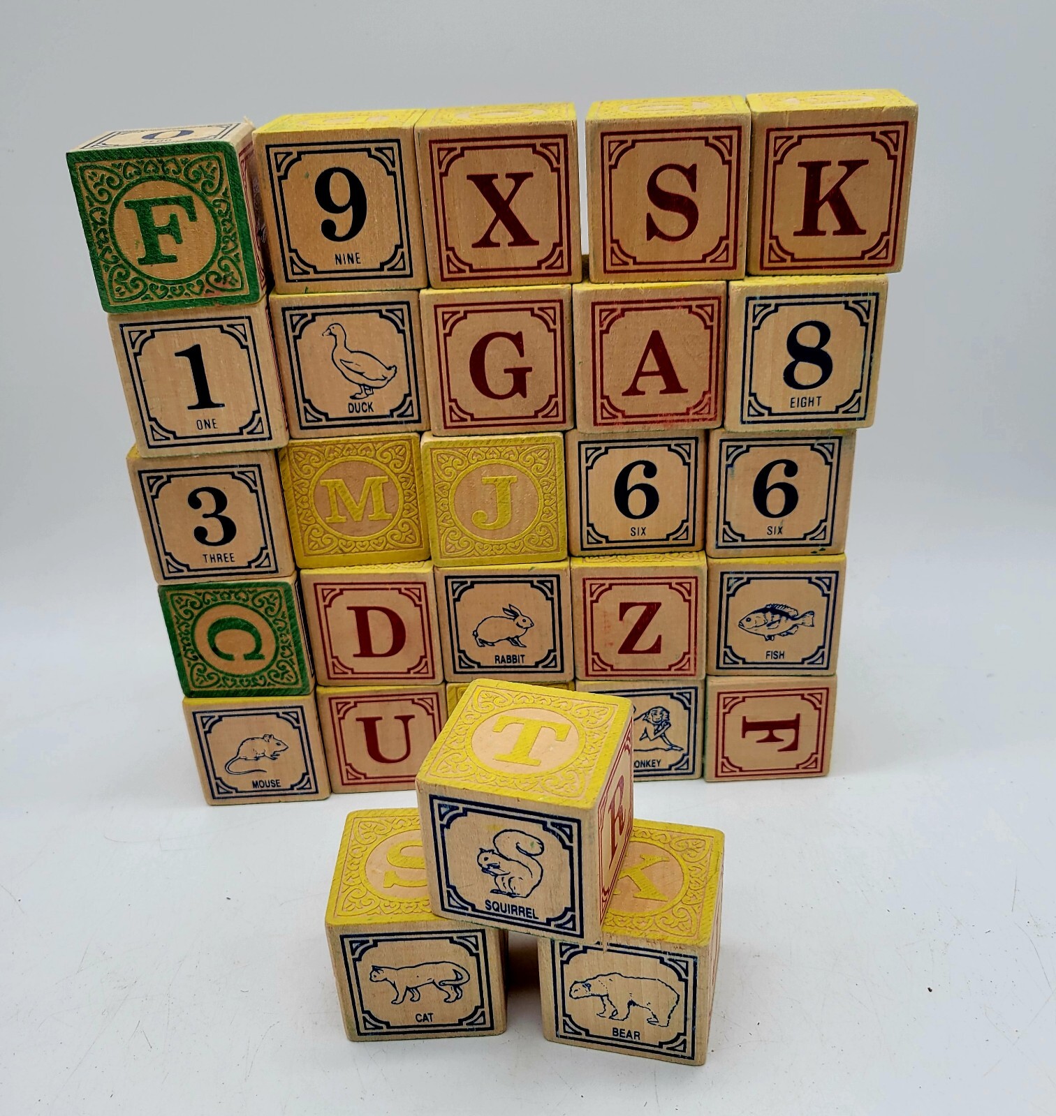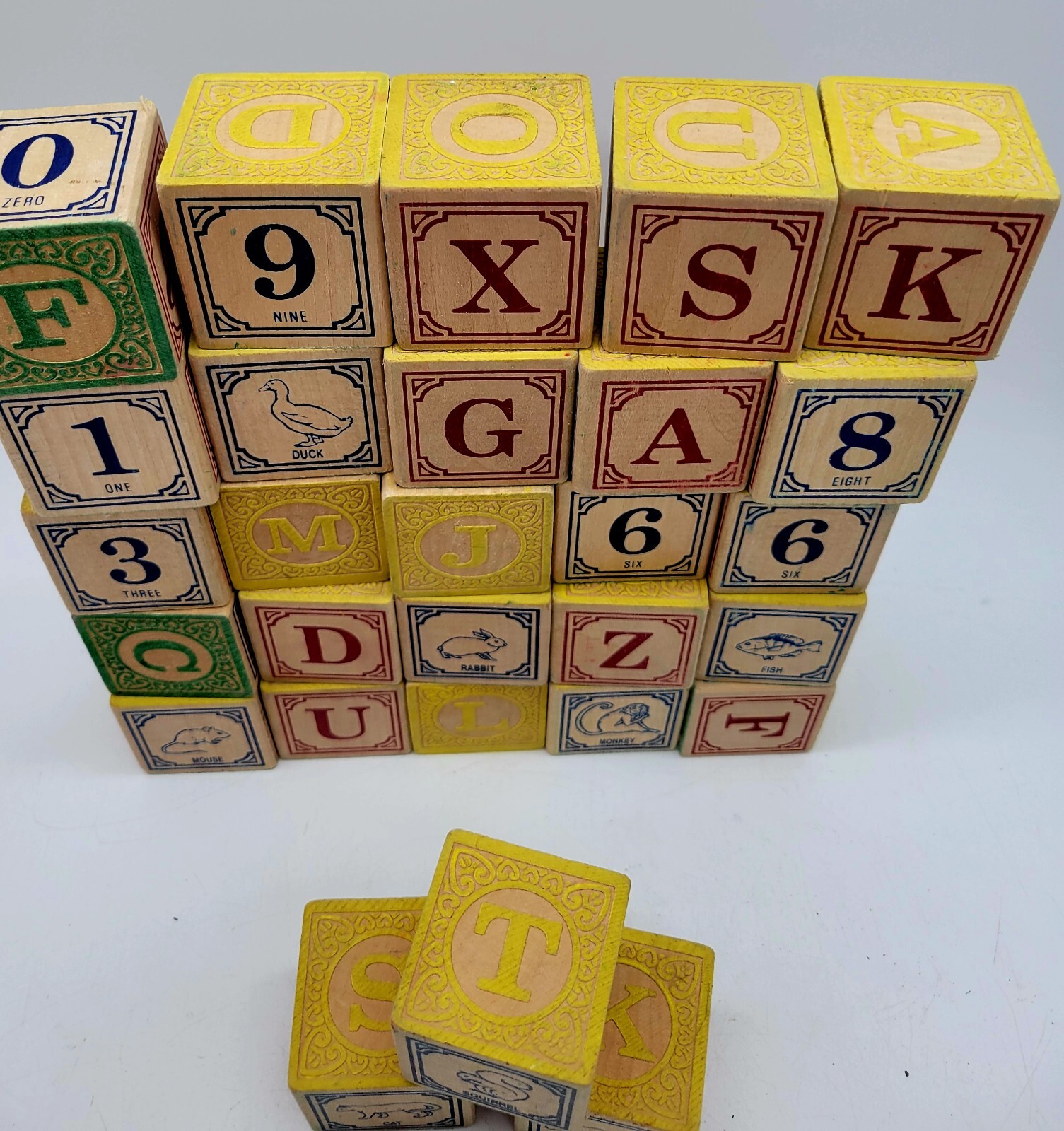 Listed as used, but all like new. 28 blocks. Letters, numbers, and animals on each.