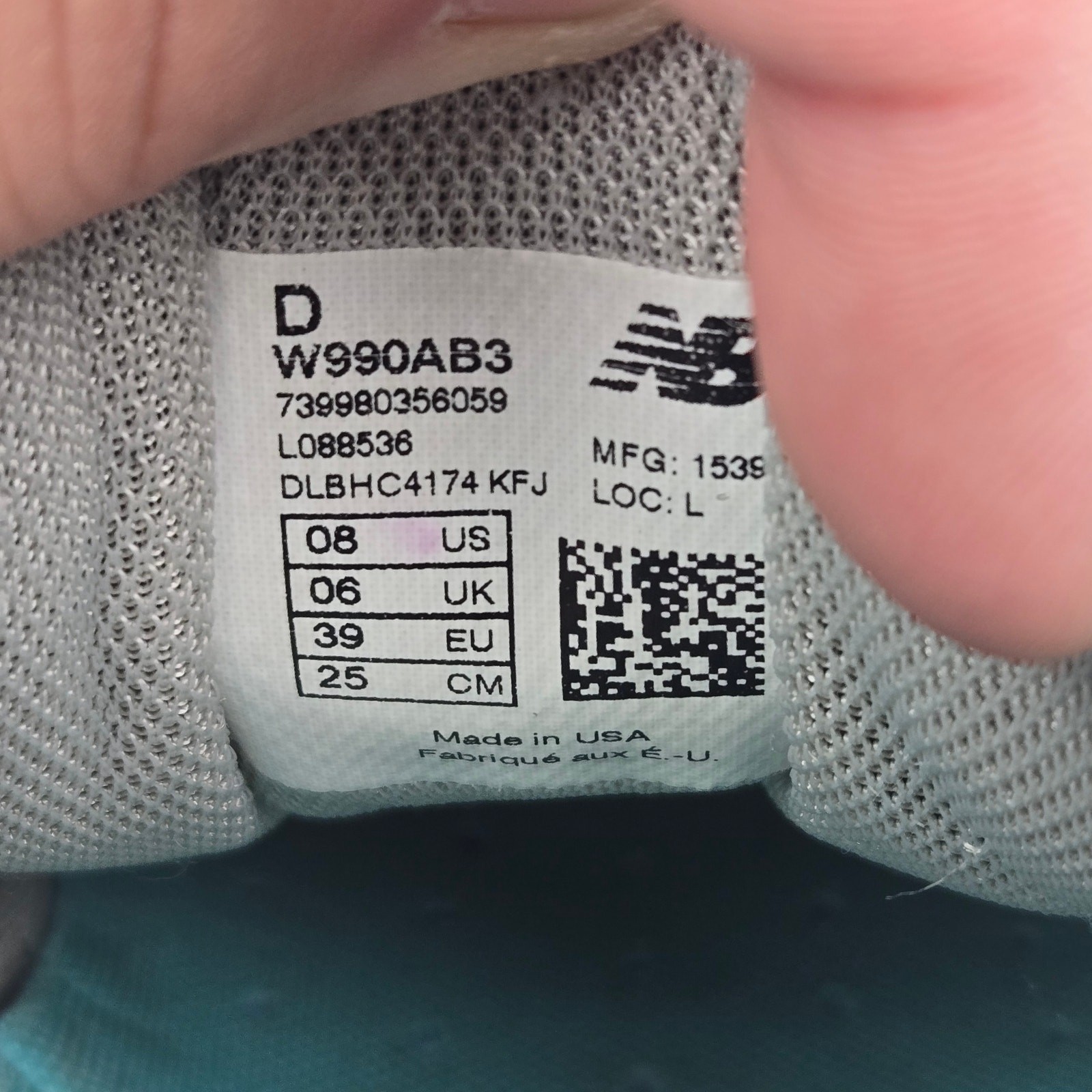 #A2407 New Balance 990v3 Black Turquoise USA Casual Lifestyle Sneaker W990AB3 Women's size 8 / UK 6 / EU 39 **D - Wide Width *marking on bottom