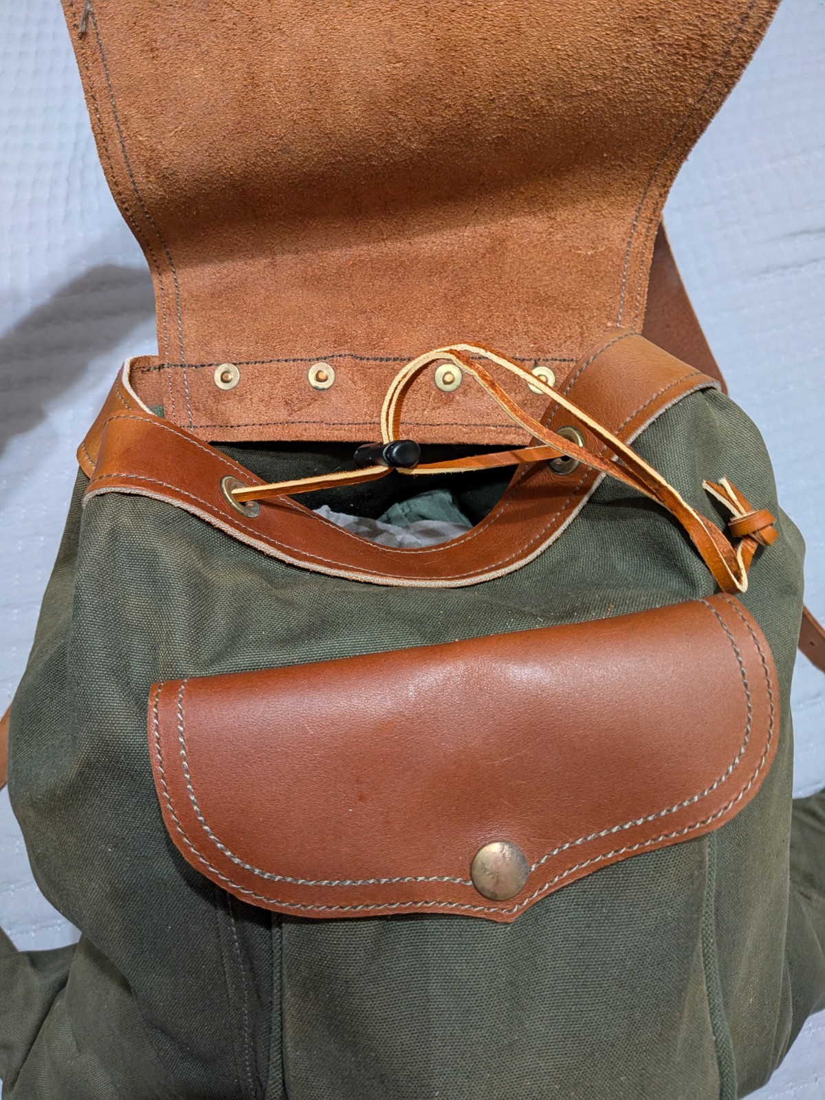 Duluth Pack Made in USA Canvas Leather Rucksack Backpack Olive Drab