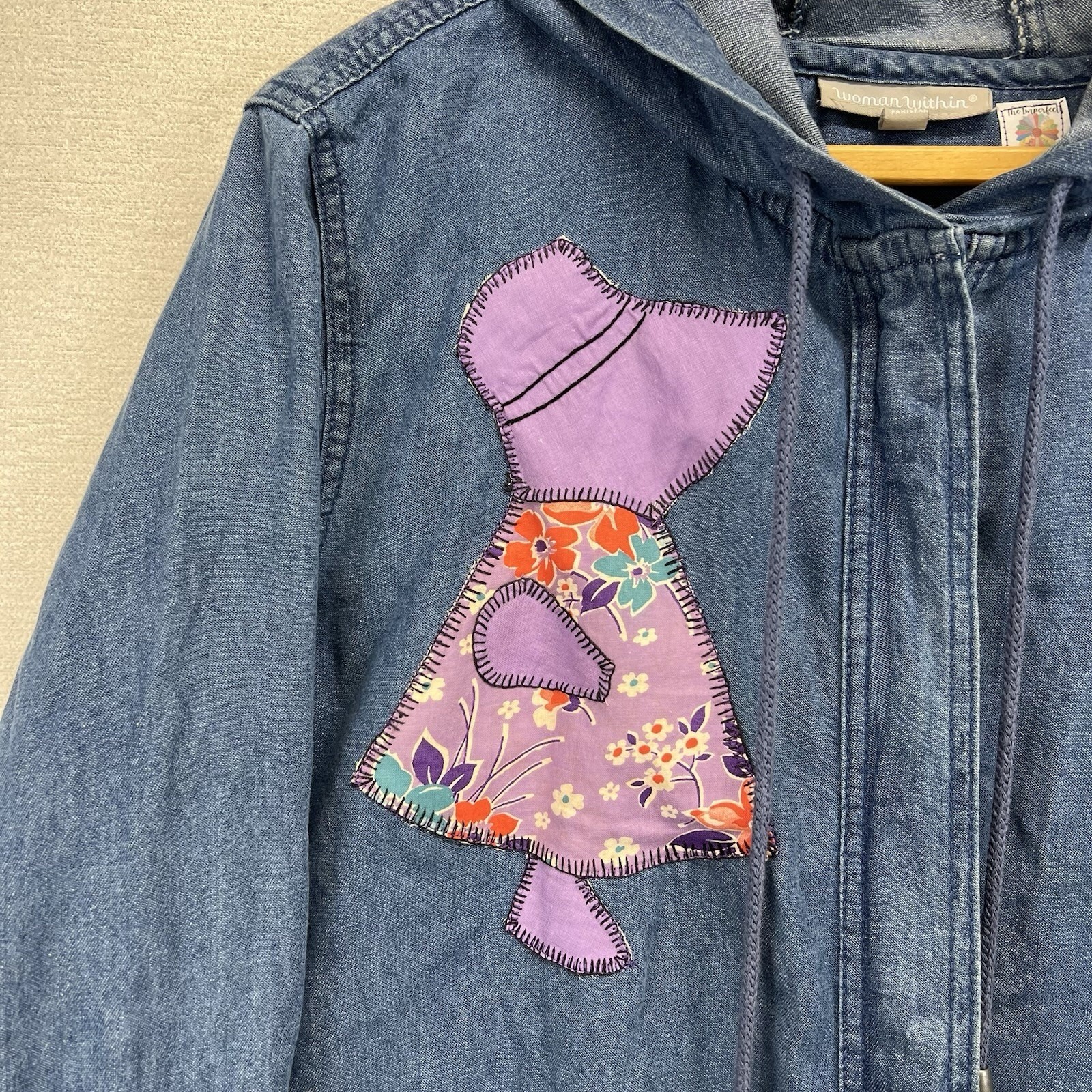 Upcycled Denim Utility Jacket Hooded 22-24 Patchwork Sue Bonnet Sue Applique