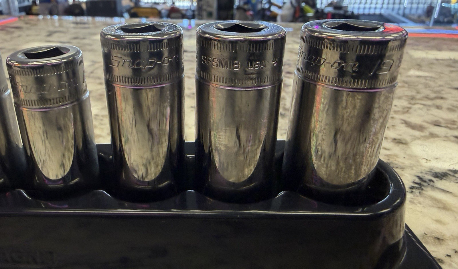 This is a 12 piece set by snap on in excellent condition as pictured. Detect with the plastic relish pictured please note the plate. Squirrel has a ding in the corner. It does not affect it in any way. The sockets have no nonfactor markings and are in overall excellent condition as pictured.