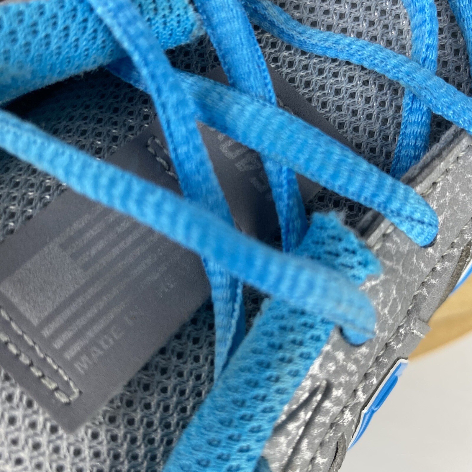 There are some marks on the inner ankle area and a spot where the fabric is worn away by one of the top eye loops (see closeup photos 11 & 12)