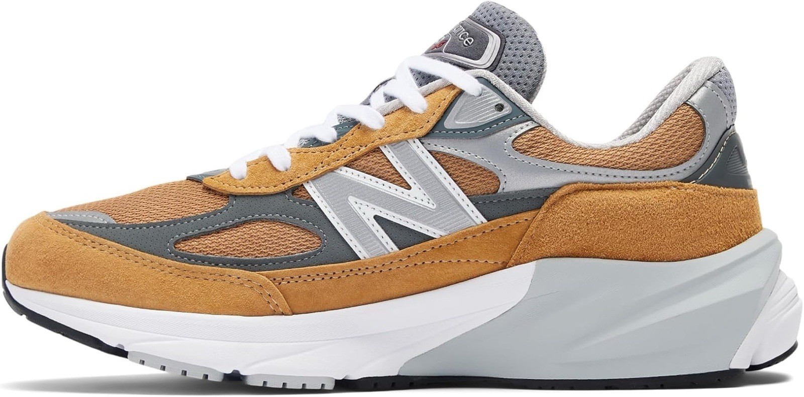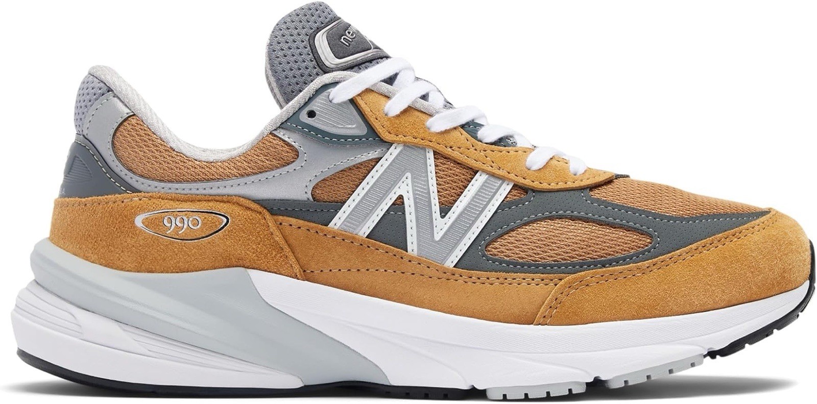 The MADE in USA 990v6 embraces the 990’s original ‘best running shoe on the market’ mandate, with a series of performance-inspired updates. The upper dispenses with the standard midfoot saddle, allowing the pigskin and synthetic overlays to flow from heel to toe across the mesh underlay, for a speedy, streamlined look. While the evolved design marks one of the most dramatic changes from one generation model to the next that the 990 has ever seen, the greatest leap forward occurs on the inside. The addition of FuelCell midsole cushioning means that the evolution of the 990 can be felt as much as it can be seen