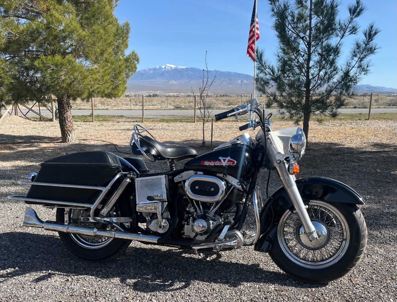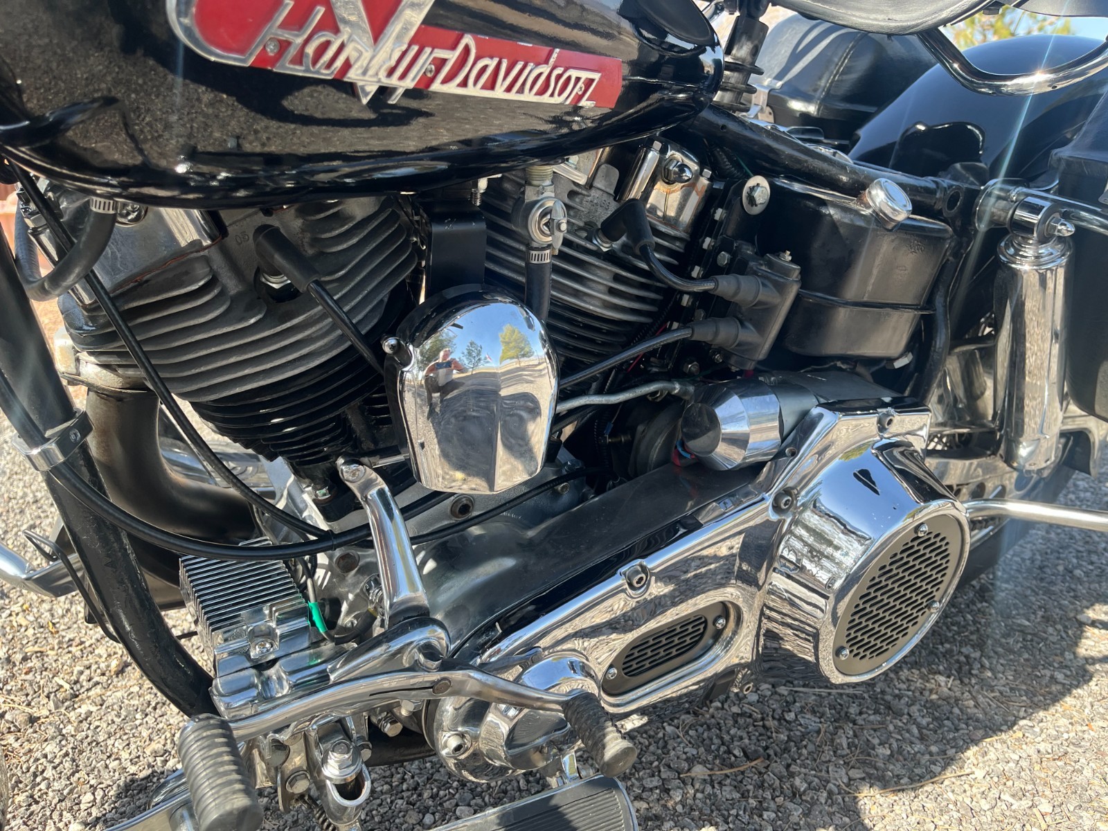 Real nice 1974 FLH Shovelhead 1200 with a fresh 1978 motor, 4 speed trans, new Dunlop tires, S&S style carb, new paint, new solo seat, leather wrapped fiberglass saddlebags, 16" chrome wheels with 100 twisted spokes, belt drive and more. Classic look and runs great with kick and electric start...see photos and video.