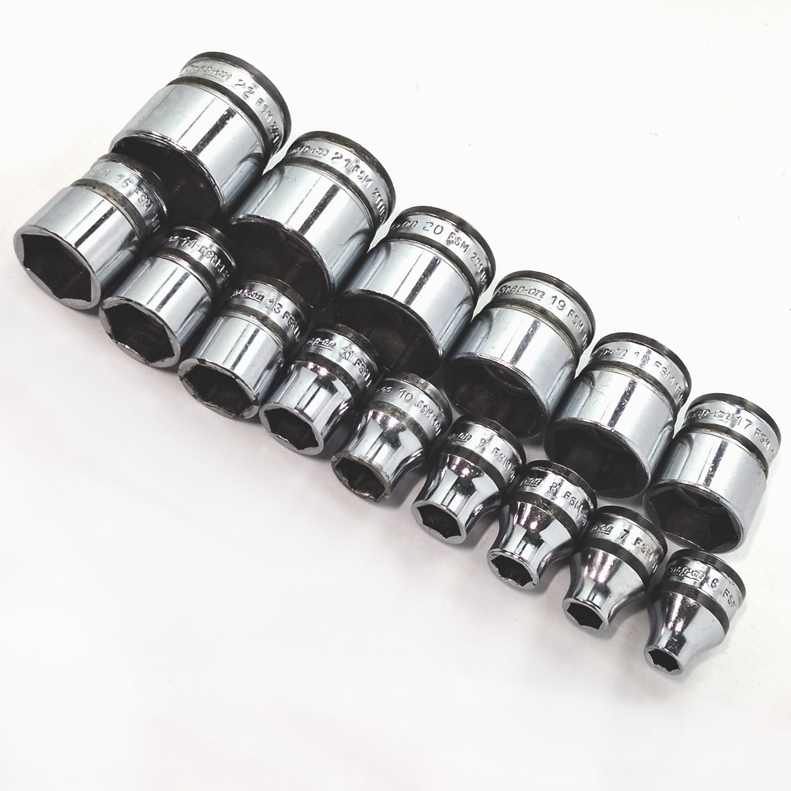 Snap On FSM 15 Piece 3/8" 6pt Metric Shallow Socket Set DESCRIPTION FOR SIZES