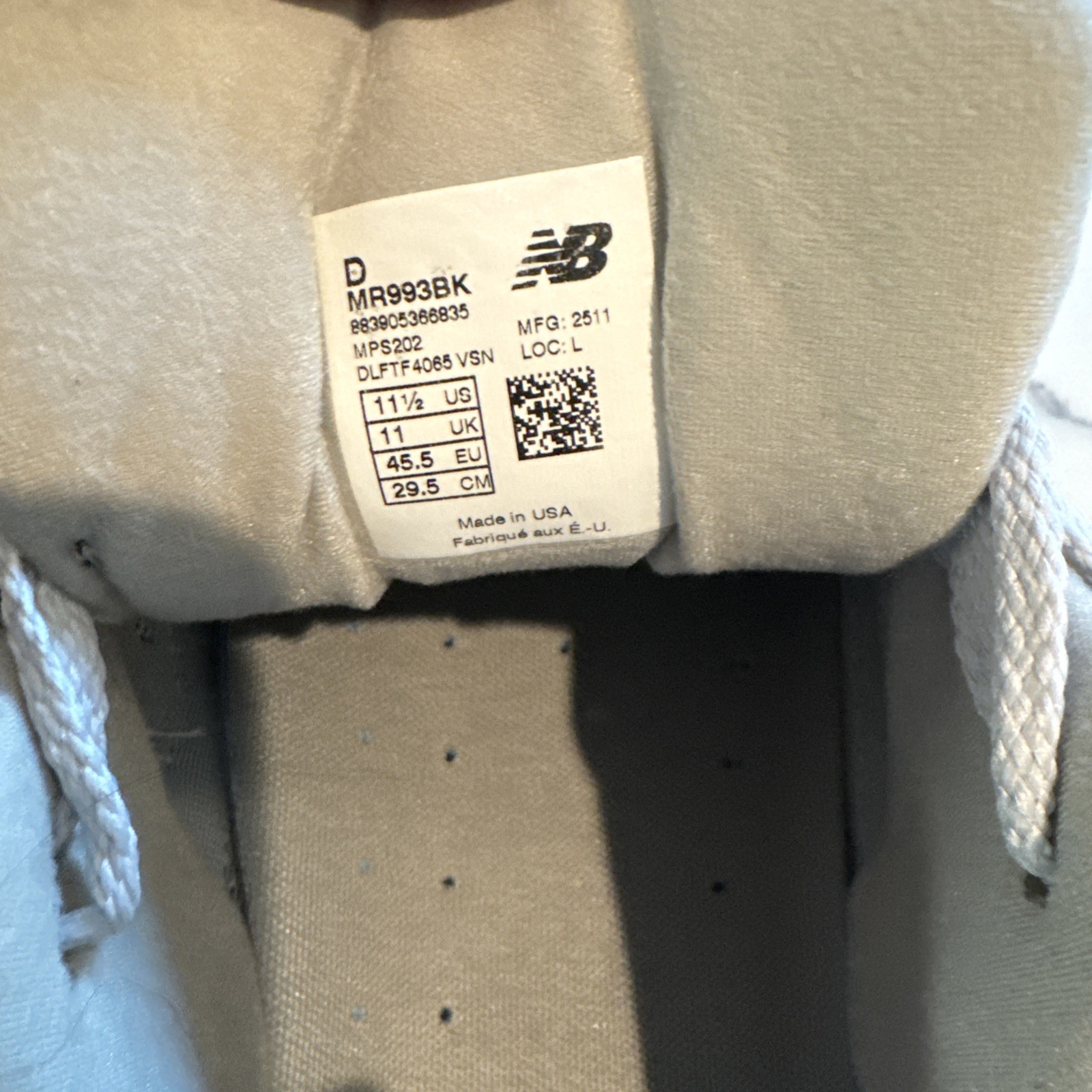 [MR993BK] New Balance Men's MADE in USA 993 Core Black/White 11.5 D