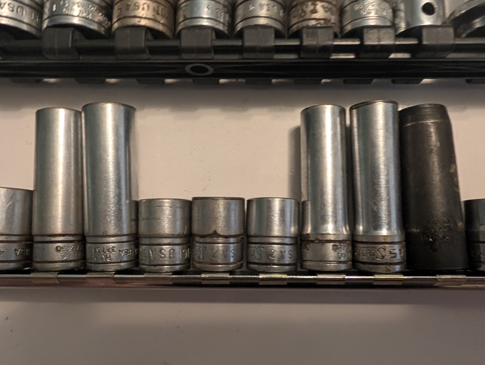 Out of a box I purchased . All SAE.  Various Sizes. Socket Rails not included. All are 3/8 Drive