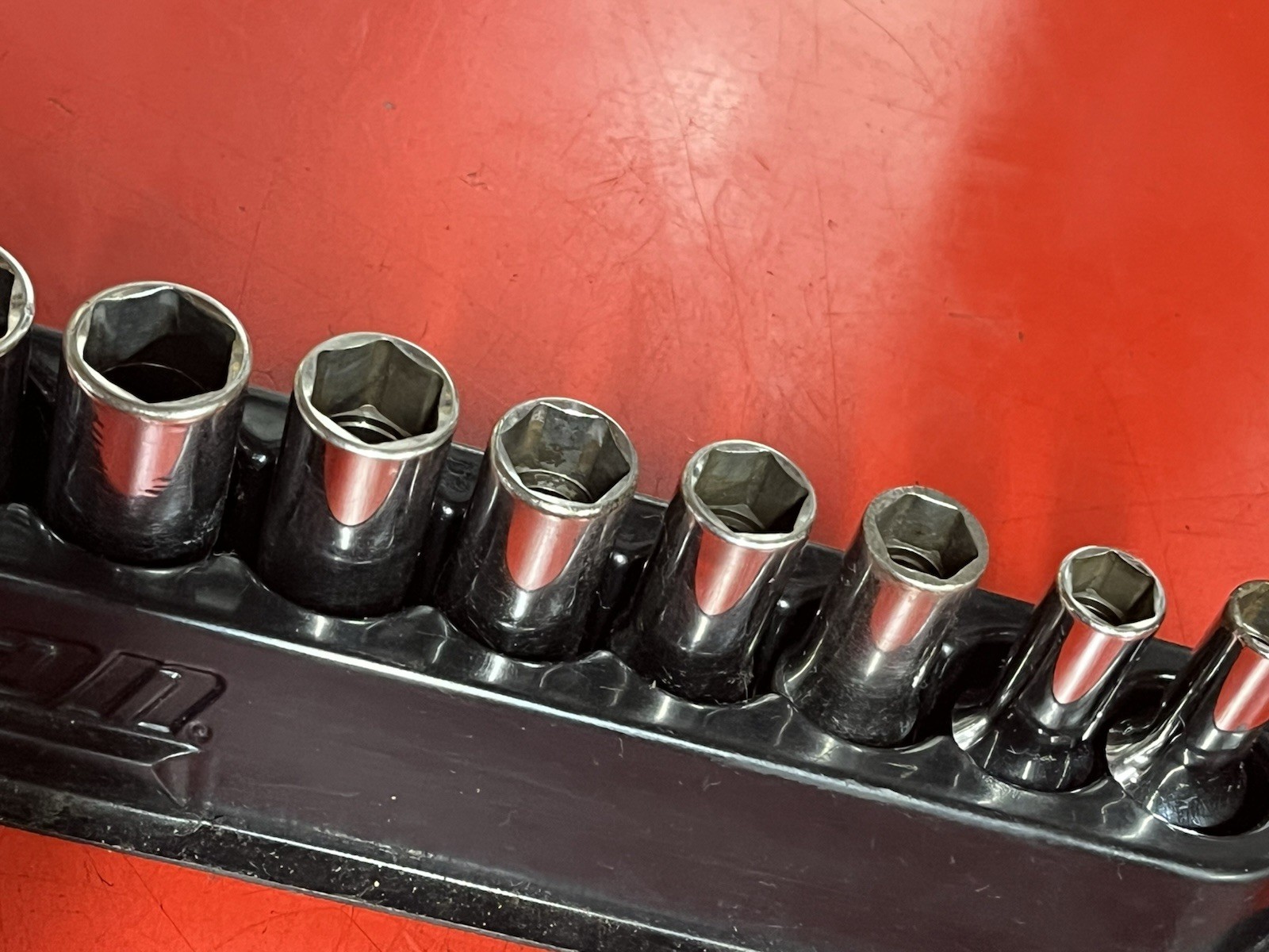 SNAP ON FSMS 12pc 8mm-19mm 3/8" Dr 6 PT METRIC SHALLOW SEMI DEEP SOCKET SET used, Look at pictures in detail, I ship usps. Check out my eBay store for more great tools. I will combine shipping on other items.