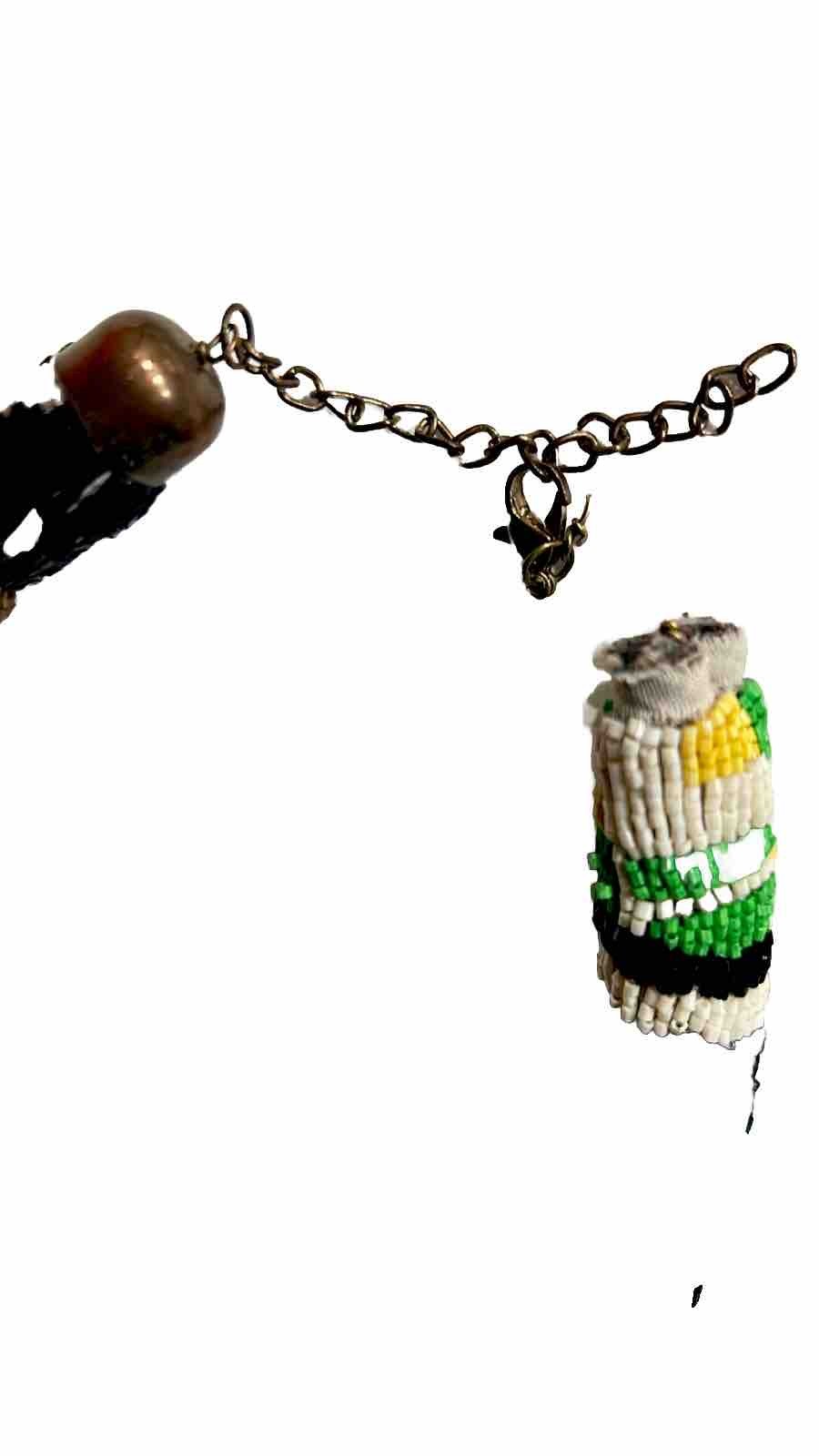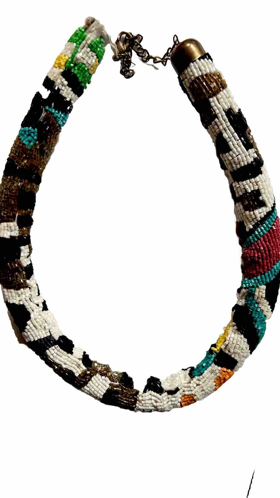 Fun and unique one of a kind USA 🇺🇸 designer necklace-chocker- pre-owned, very good with no visible flaws except locker chain is broken and metal detached part connecting necklace is missing - needs to be fixed at a jeweler . Length 20” - Ask for any other additional measurements if needed and I will provide as I won't take returns. Final sale ! Great quality and goes with lots of outfits, very versatile- so much fun! You will love it! Term conditions you agree once bid: 1. I do not accept returns, BUT please do contact me if there is a miss (un-noticed flaw rather then the item looks older then you expected - I sell pre-owned items sometimes from consignment stores) - 2. I check my items before mailing them and I guarantee that all my items are washed or dry-cleaned prior sending to you. 3. Ask me questions before bidding. I do not guarantee my items to be suitable for you if you are allergic to specific detergent - please be careful in that regard before you bid - I do not accept returns for not fitting after providing measurements as well, allergy issues. 4. However, I am only human and mistakes like un-noticed flaw may happen !!! - I may grand a return depending on an issue only when the item returned back to me, however buyer pays return shipping regardless of any party's mistake!!!