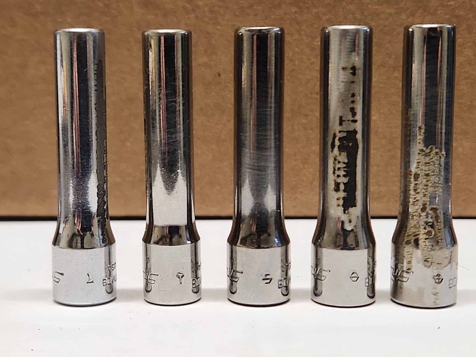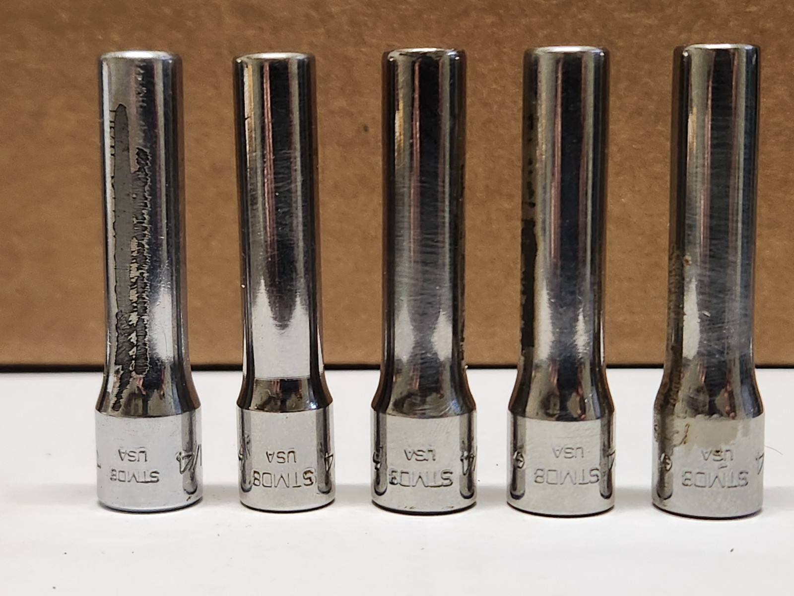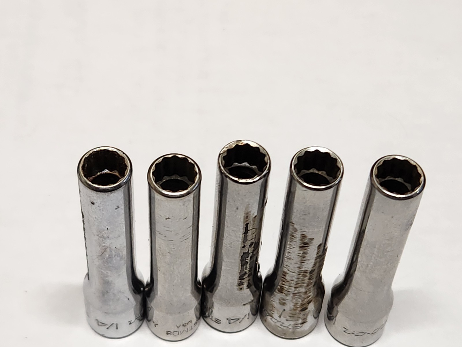 I have 5 of these STMD8 1/4" Sockets. You will receive one. There is discounts for buying more than one. These are used sockets and will show signs of use. There also may be etching, scrip marks, small grind marks, rust, etc... You will receive one of the sockets in the photos. Over all these are good used sockets and ready to go to work!!
