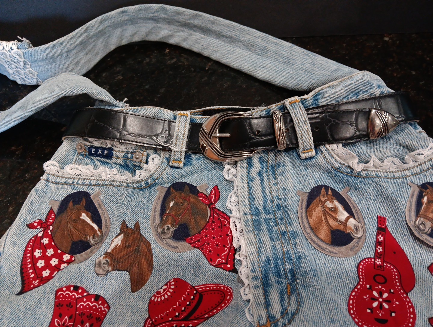 Vtg EXP Jeans Denim Purse Handmade Horse Theme Upcycled Bag USA EUC