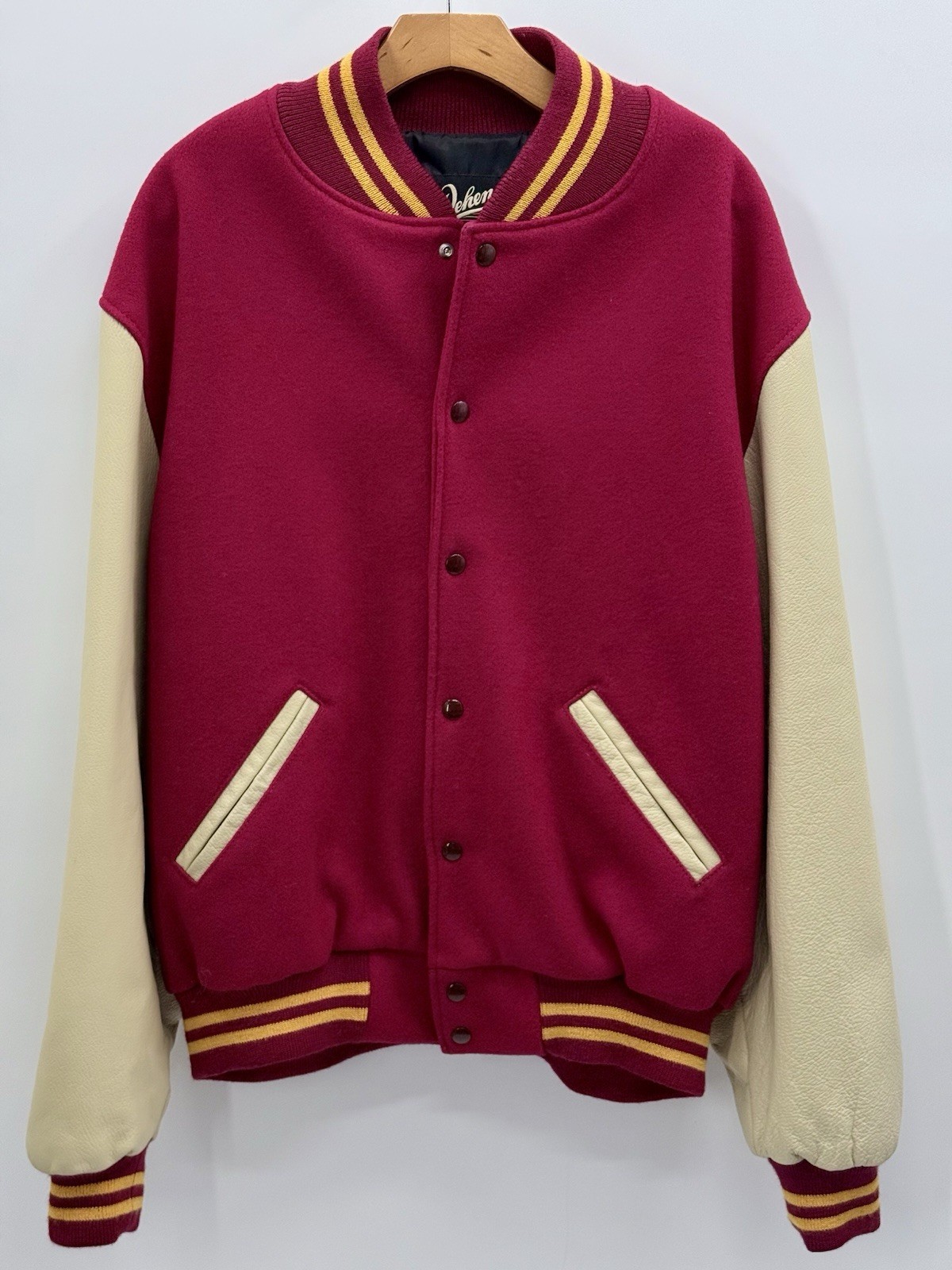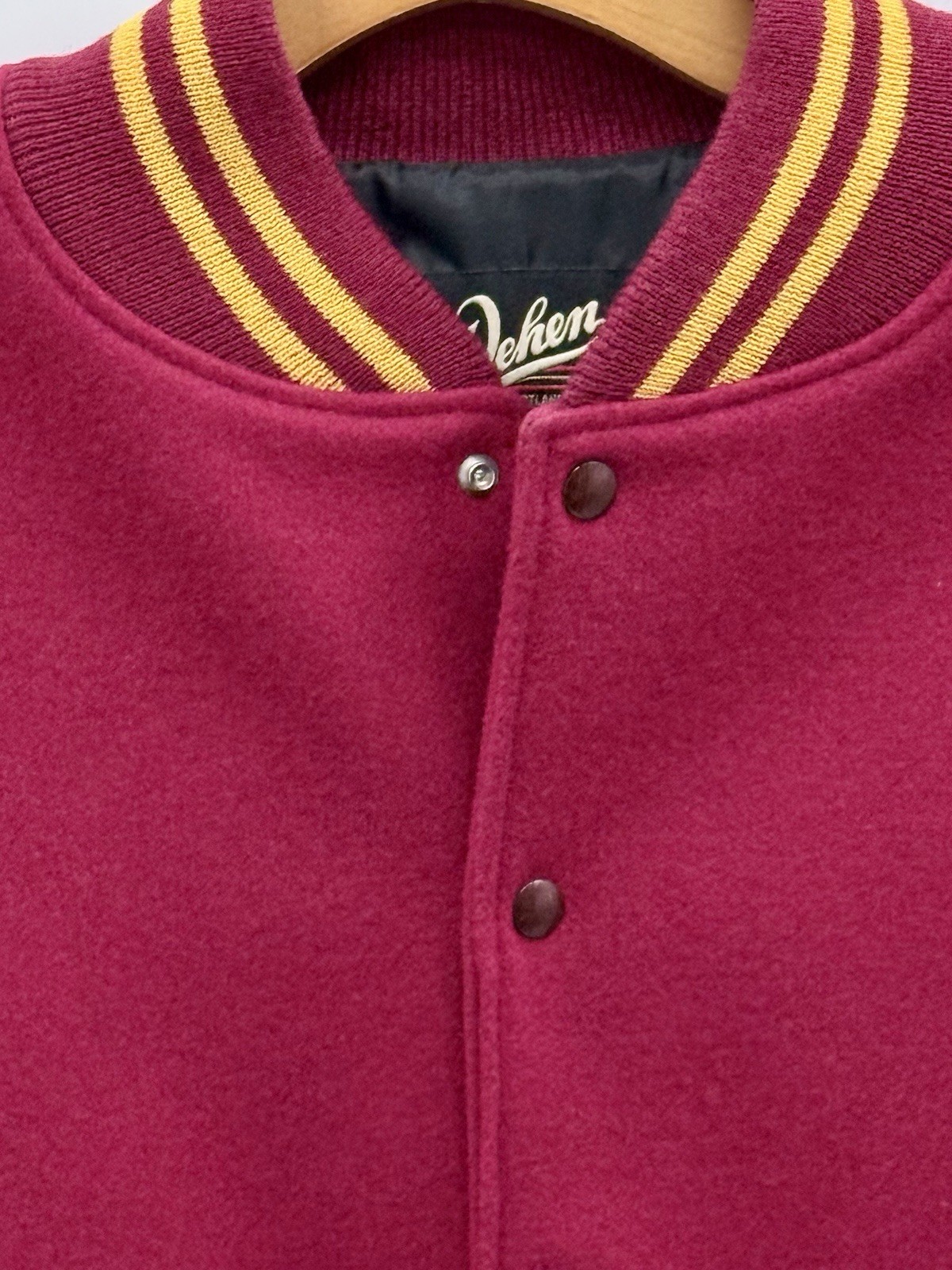 This is an authentic American varsity jacket by Dehen, handcrafted in Portland, Oregon, USA. Dehen is one of the most respected heritage outerwear makers in the United States, known for uncompromising materials, traditional manufacturing methods, and continuity of production spanning generations.