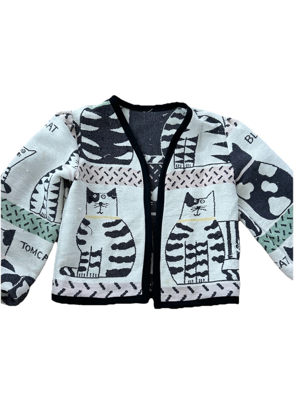 OOAK Upcycled VTG Tapestry Blanket Coat Jacket Cat Kitty Fat Tabby Alley L/XL