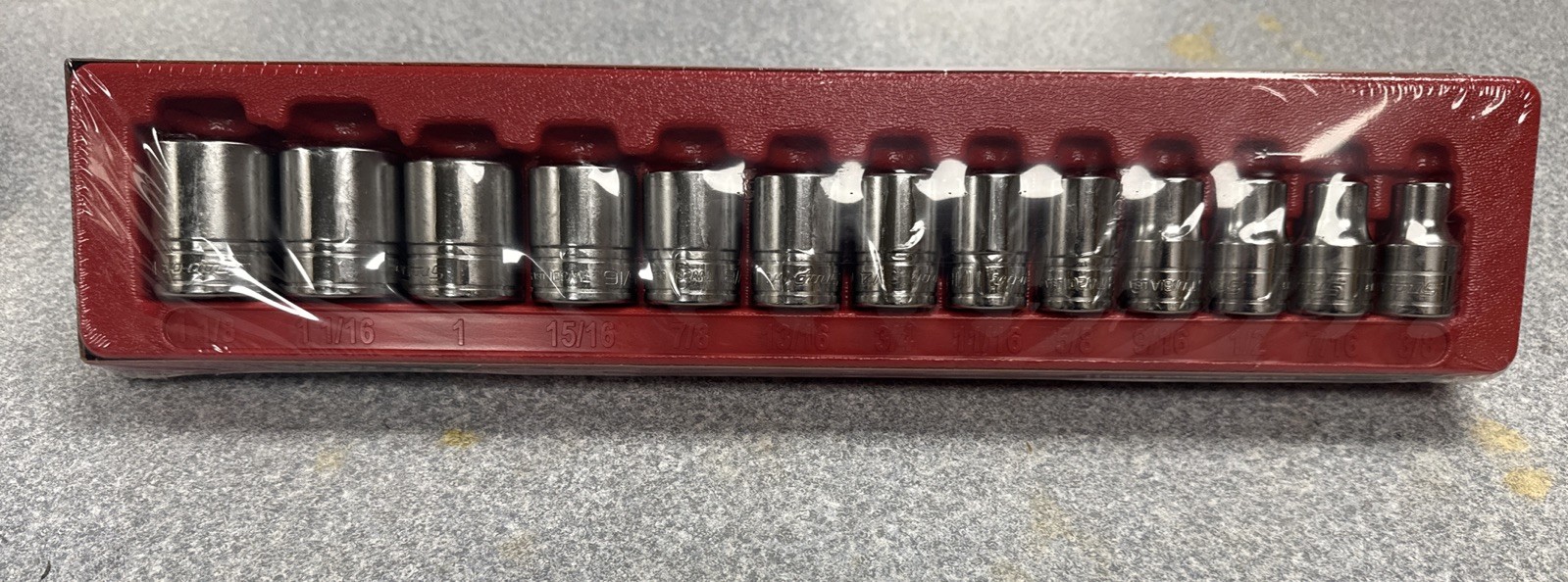 Snap-on Tools USA NEW 13pc 1/2" Drive SAE Chrome 6pt Shallow Socket Set 313TWYA