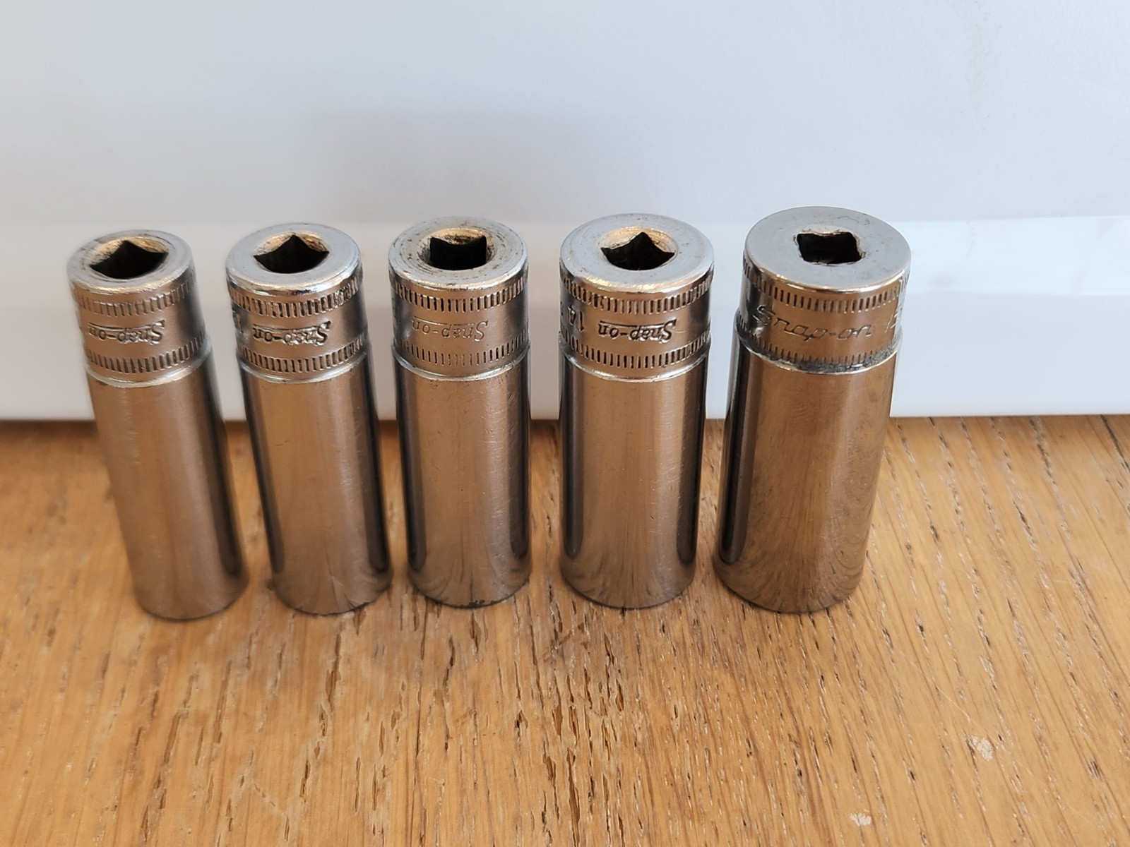 5 Pc. Snap-on Deep Well Socket Set 1/4” Dr. 6 Pt. STMM 11 12 13 14 15MM. GY