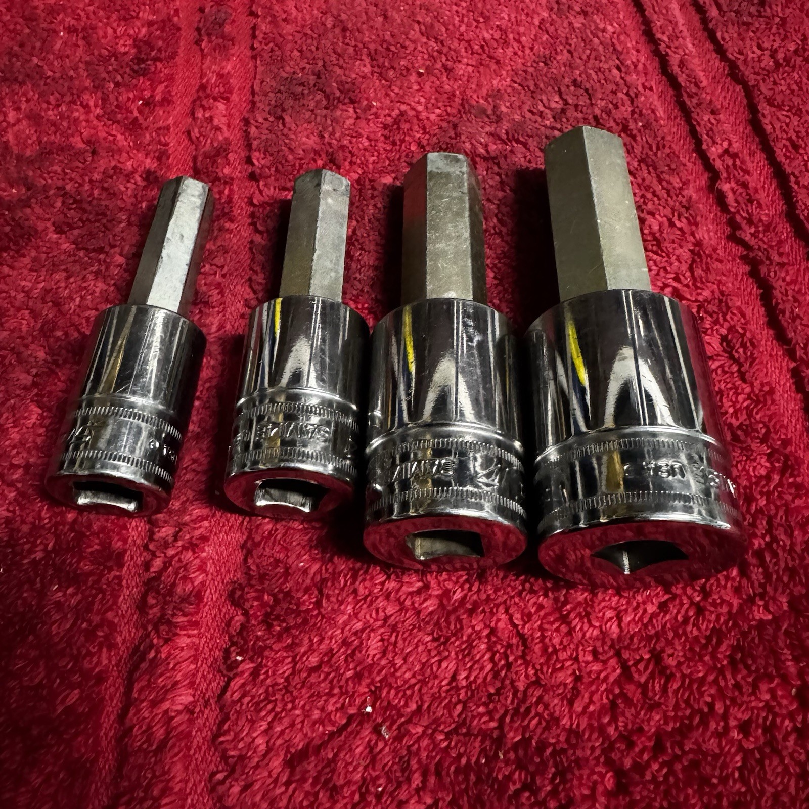 Snap On Tools 4pc Hex Bit Driver Socket 1/2" Drive SAM 12/14/17/19mm Used