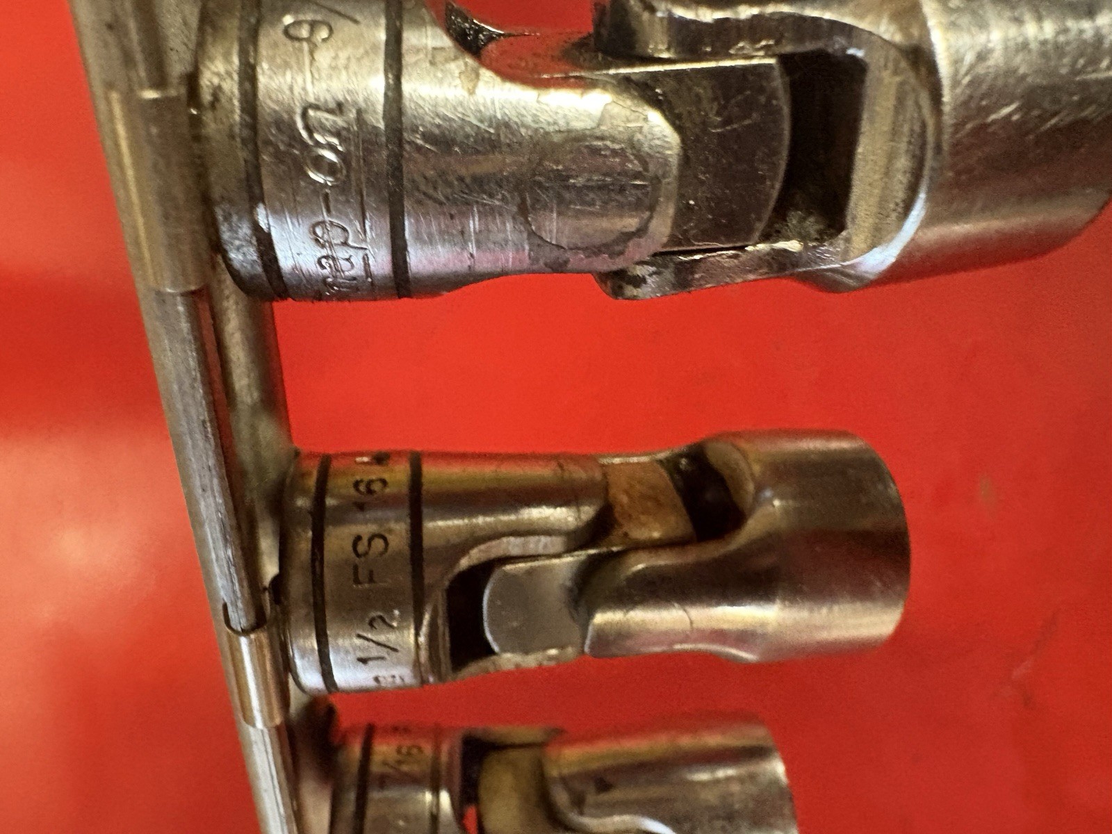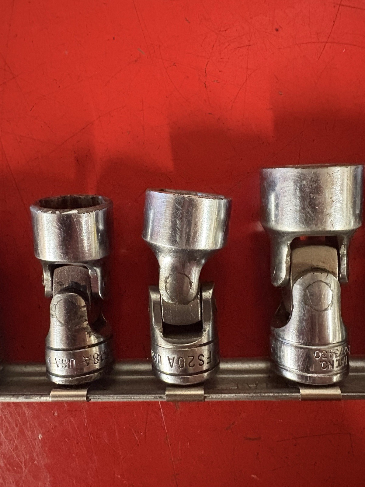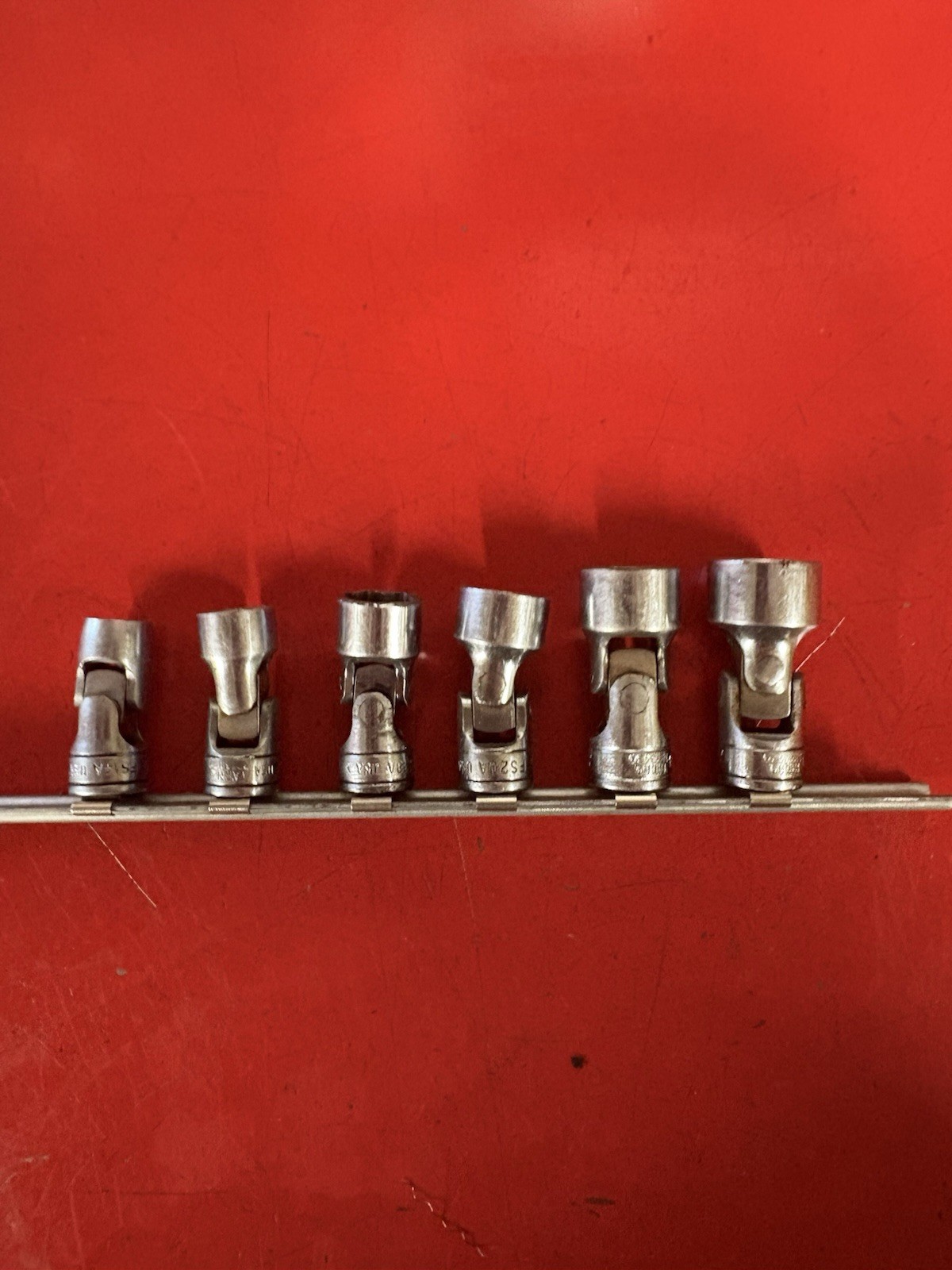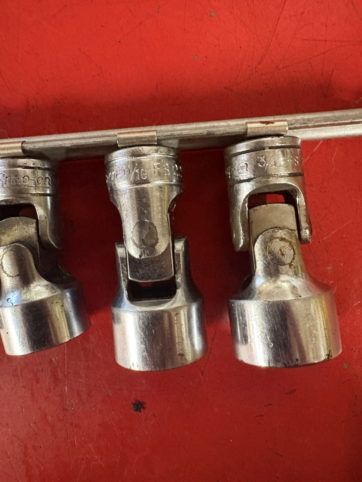 Snap-on 3/8" drive 6pc SAE shallow 6 pt swivel socket set includes sizes ranging from 3/4" to 7/16". used, Look at pictures in detail, I ship usps. Check out my eBay store for more great tools. I will combine shipping on other items.