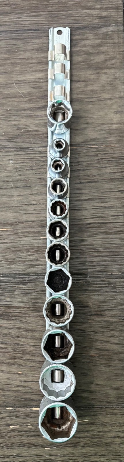 11 Piece Snap On 3/8" Drive Sockets on Rail 6 & 12 Point