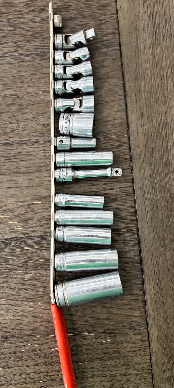 13 Piece Snap On 1/4” Long & Short Drive Sockets on Rail 12 Point