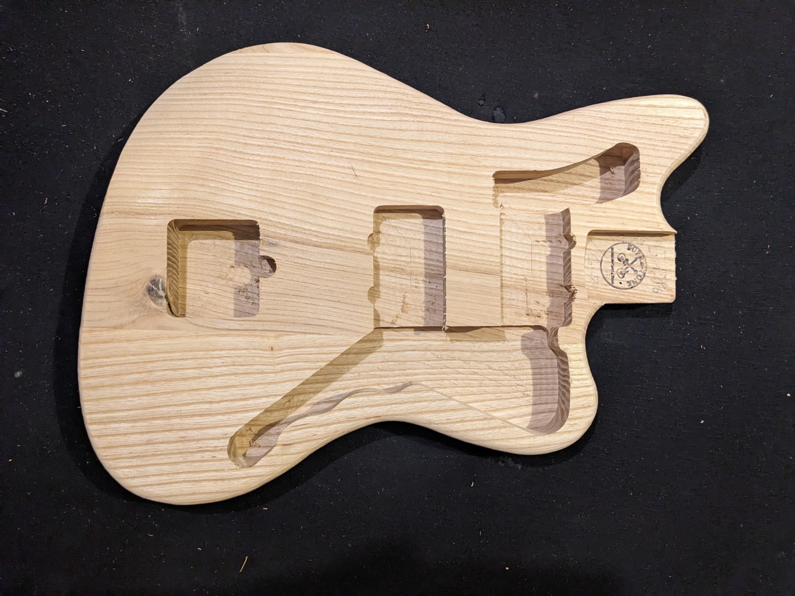 - Wiring holes between pickups and control cavity are drilled