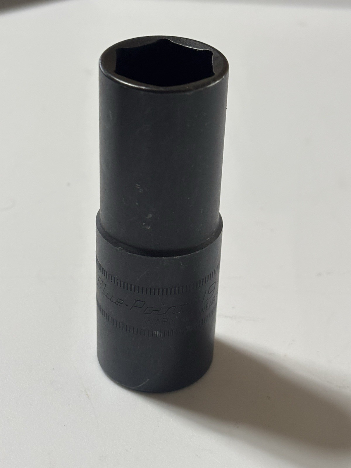 The Snap On Compatible 1/2 Square Drive 19 and 21 mm Wheel Flip Socket by Blue Point is a high-quality, single-piece socket designed for use with metric measurements. Made in the United States, this 6-point socket features a 1/2 inch drive size and is specifically sized at 21mm. Perfect for automotive and industrial applications, this durable and reliable socket is a must-have for any mechanic or technician needing to work with wheel lug nuts.