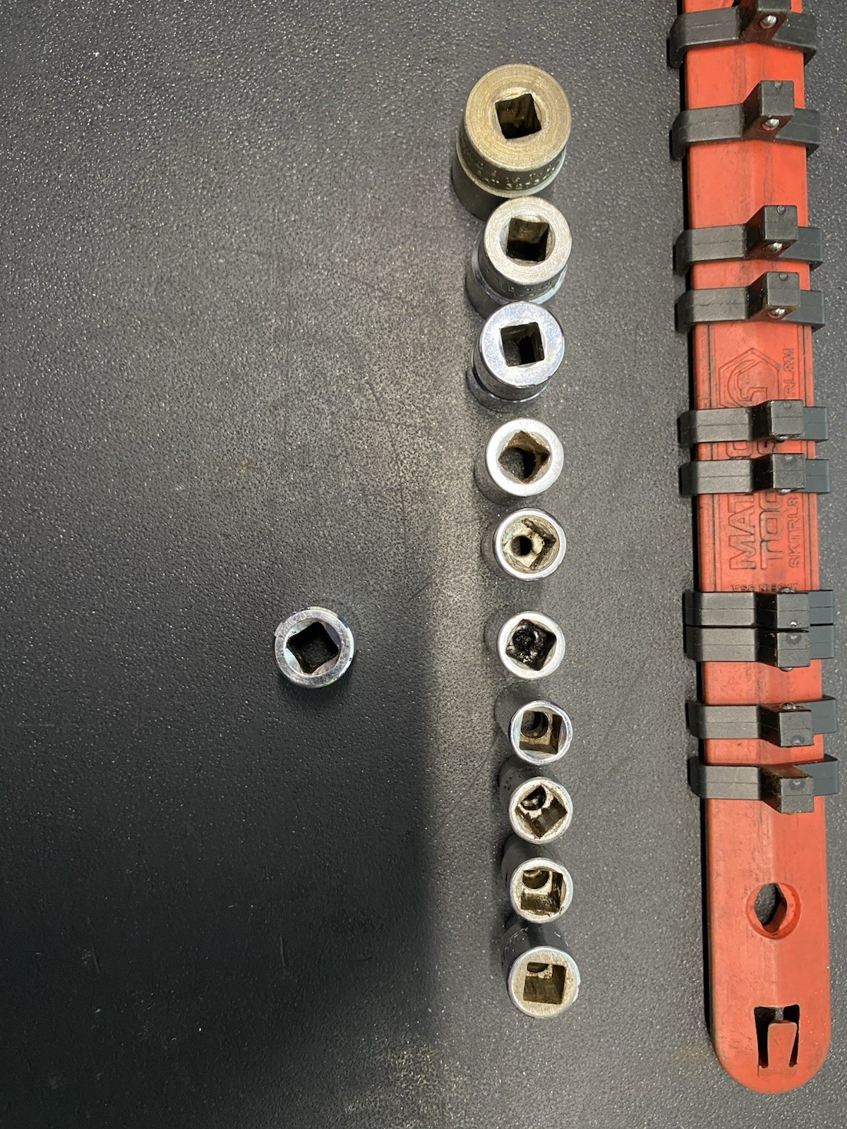 The 3/8 is a 6 point. But have MAC USA 3/8 12 point. Older sockets underline sockets. Rust is present. Normal wear, marks, chipping and scratches from use.