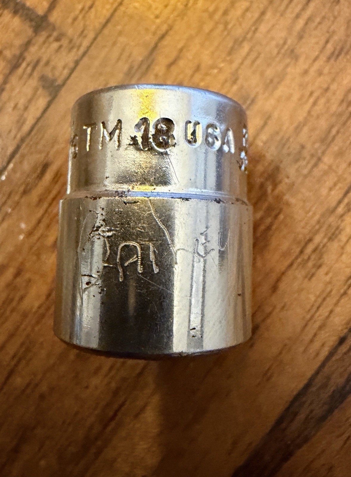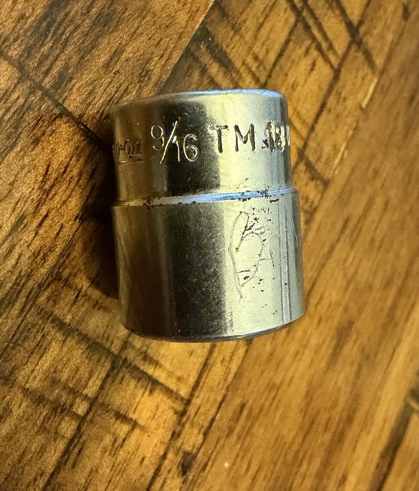Snap On TM18 9/16" SAE 1/4” Drive 6-Point Shallow Chrome Socket USA VTG