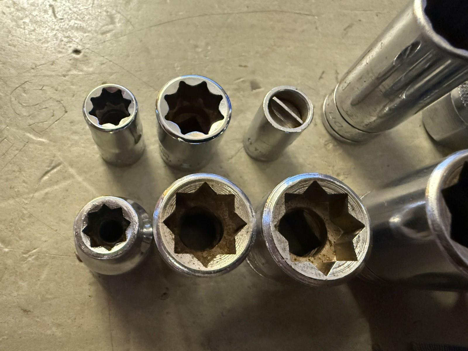 S6118 - 1/4" drive, double ended spring cap socket TM83A - 1/4" drive, carburetor adjustment socket TM408 - 1/4" drive, shallow 1/4" 8 point star double square socket TM412 - 1/4" drive, shallow 3/8" 8 point star double square socket F308 - 3/8" drive, shallow 1/4" 8 point star double square socket F314 - 3/8" drive, shallow 7/16" 8 point star double square socket F316 - 3/8" drive, shallow 1/2" 8 point star double square socket F320 - 3/8" drive, shallow 5/8" 8 point star double square socket SW418 - 3/8" drive, 9/16" 8 point star double square socket S9717KA - 3/8" drive, 5/8" 6 point spark plug socket (no rubber boot) S9704F - 3/8" drive, 13/16" 6 point spark plug socket A98 - 1/2" drive, 3/4" and 13/16" 6 point double end flip socket