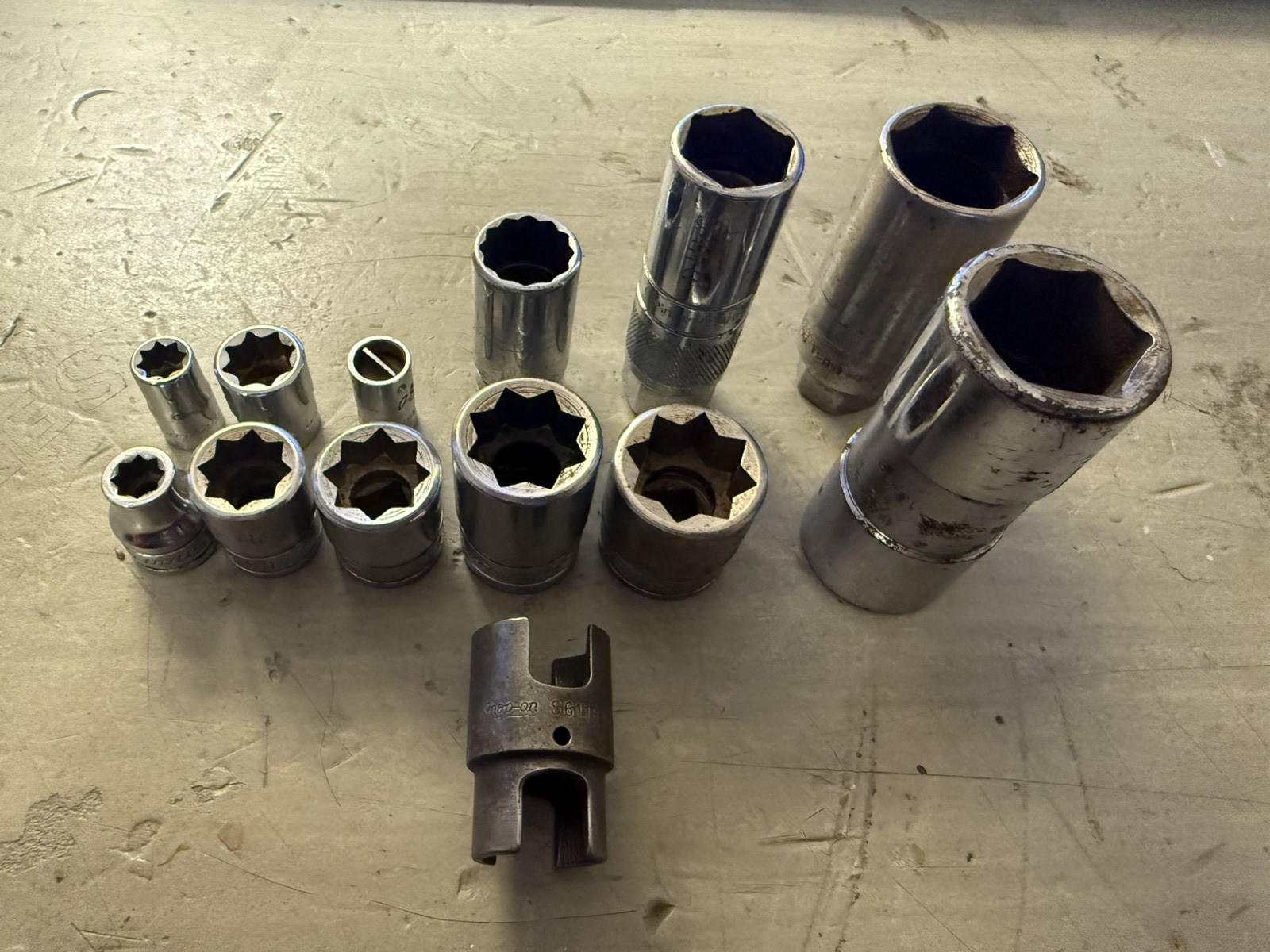 Snap-On USA 13 pc SAE Socket Lot 1/4" 3/8" 1/2" Double Square Star Spark Plug