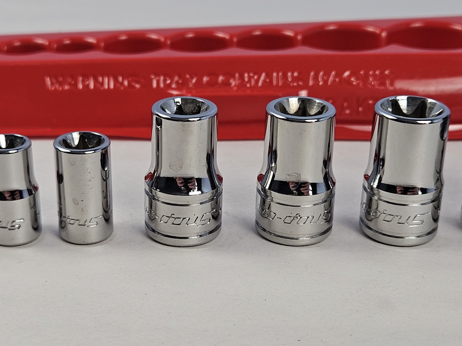 - Listing is for one used set of Snap-On shallow external torx sockets with magnetic tray.