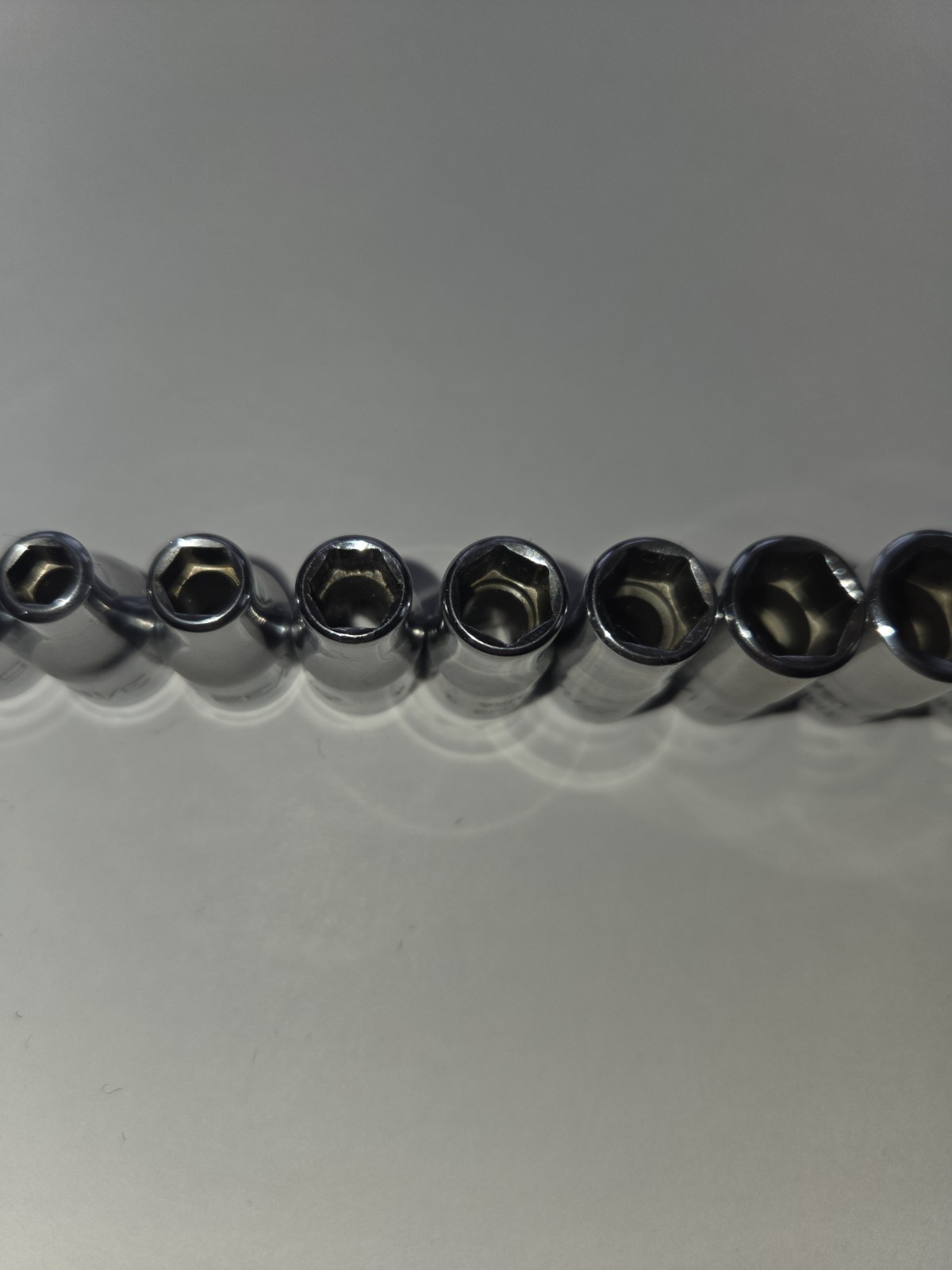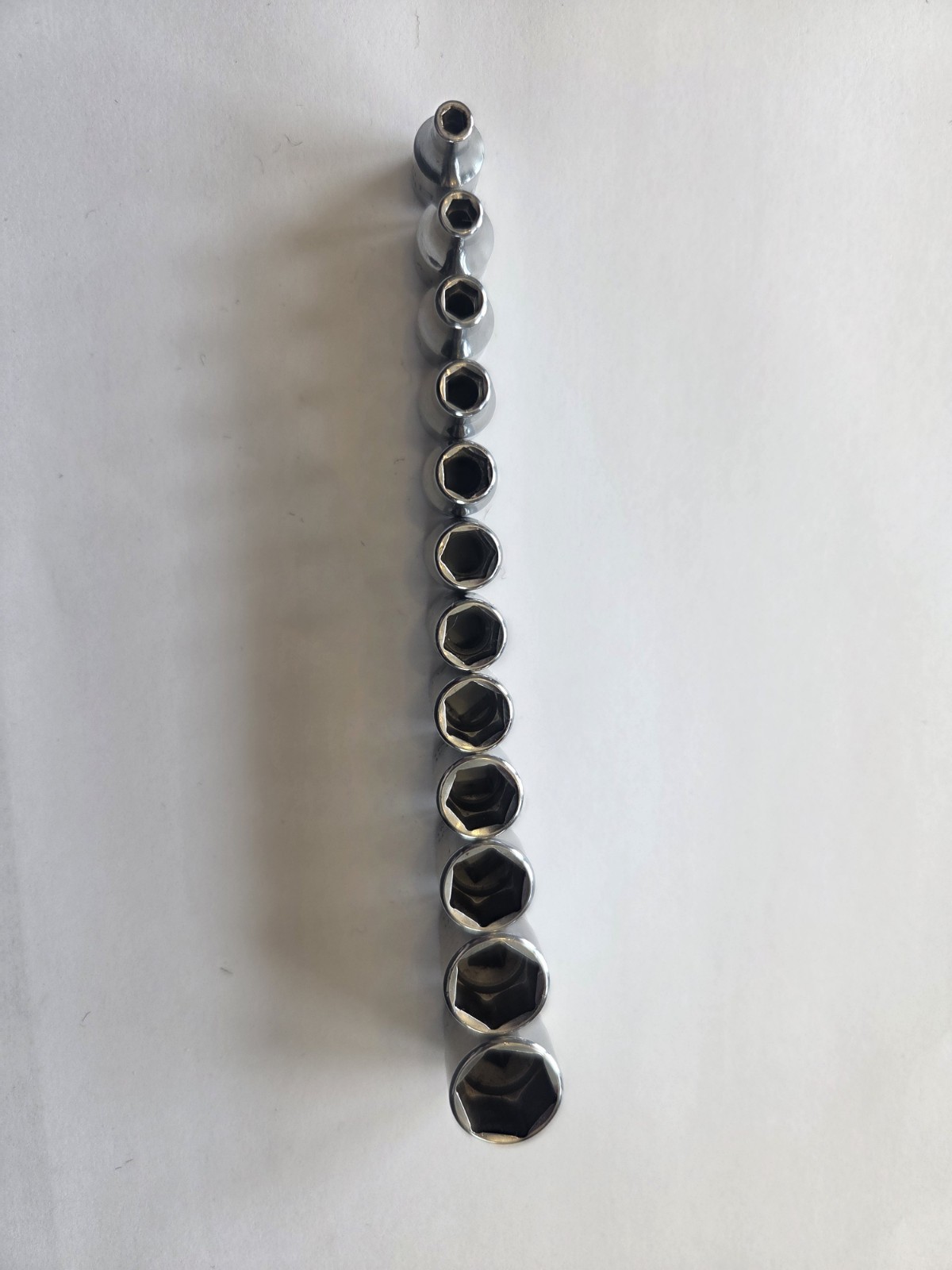 Mint condition with NO prior owners marks. Very well cared for set! Sizes are 1/8" 5/32" 3/16" 7/32" 1/4" 9/32" 5/16" 11/32" 3/8" 7/16" 1/2" 9/16" The 1/8" and 5/32" sockets are very hard to find. Please ask any questions you may have. Please ENLARGE the photos as they ARE part of the item description. Being sold AS IS with NO returns ALL sales ARE final
