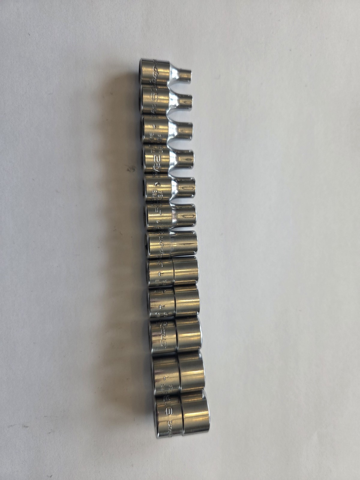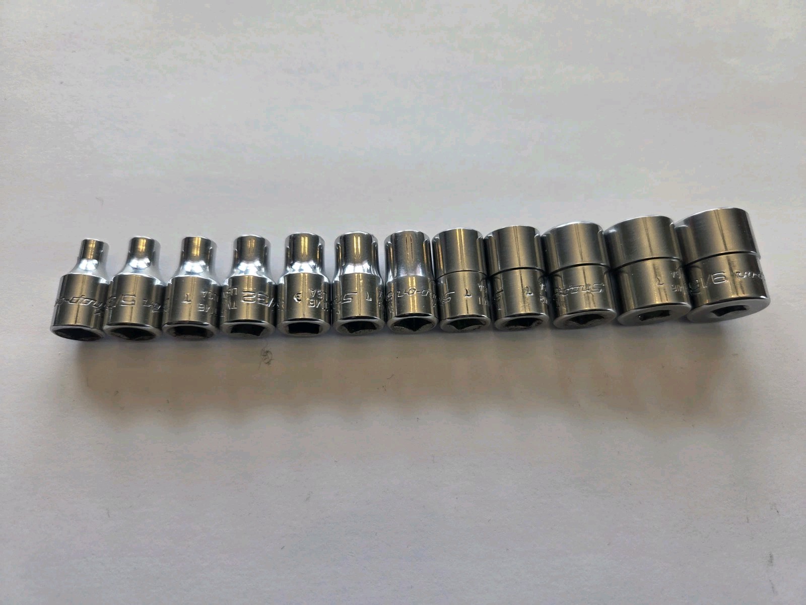 Snap On Tools 12 Piece SAE 6 Point Shallow Socket Set 1/8" To 9/16" MINT