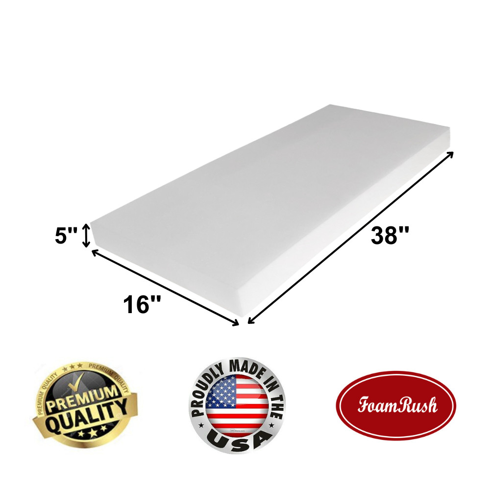 FoamRush 16" x 38" High Density Upholstery Foam Seat Cushion (Made in USA)