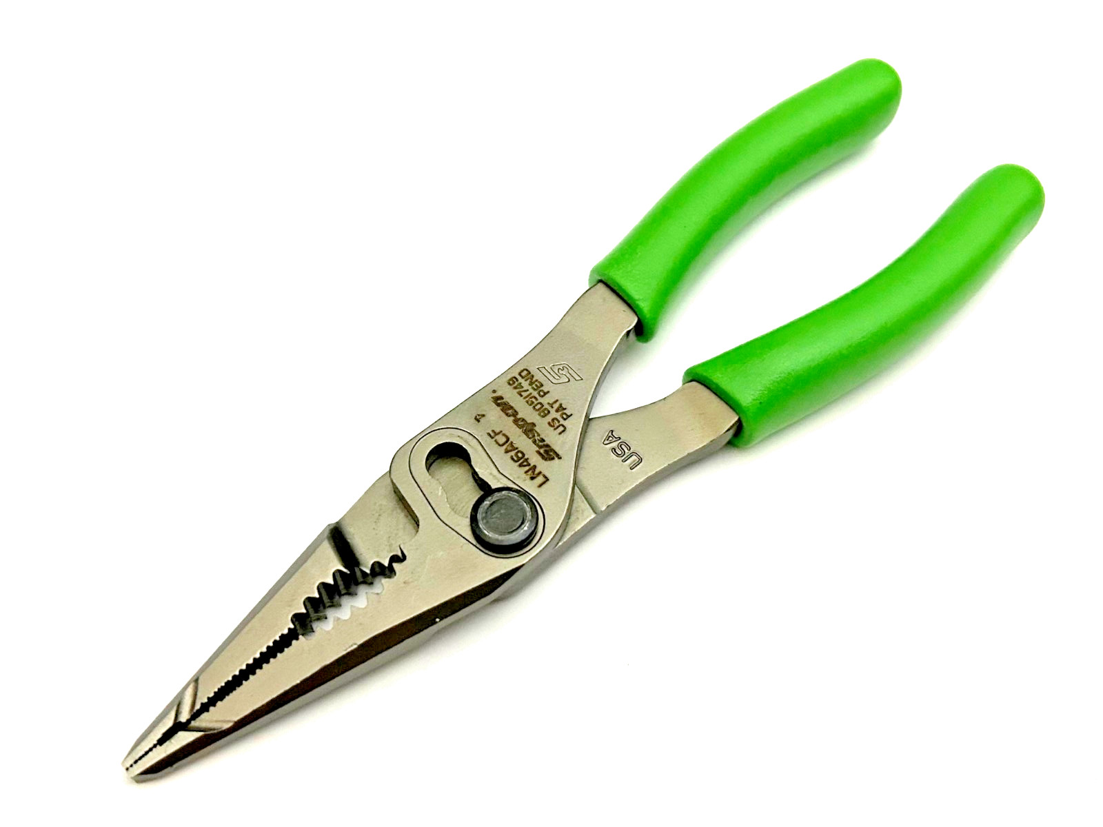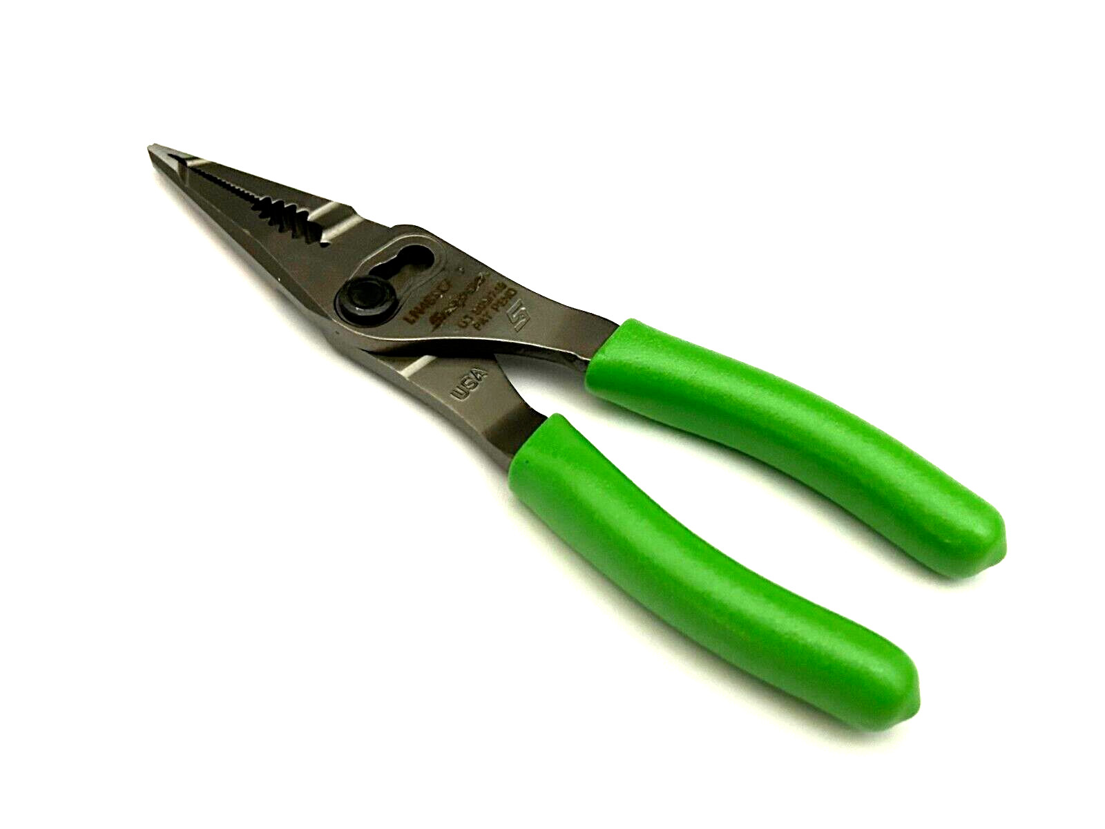 SNAP ON TOOLS USA GREEN 7" Soft Grip Long Nose Slip Joint Pliers LN46ACFG NEW