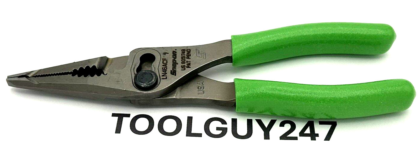 SNAP ON TOOLS USA GREEN 7" Soft Grip Long Nose Slip Joint Pliers LN46ACF G NEW