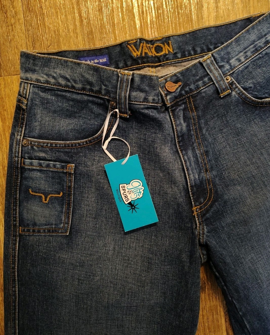 The Watson Jeans Men's 31x34 in Blue Light Wash is a classic pair of straight-leg denim workwear made in the USA. Featuring a solid light wash, these cotton jeans have a regular fit with a 31-inch waist and 34-inch inseam. The brand Watson is known for quality denim products, and these jeans are no exception, offering a timeless style with practical features like pockets. Ideal for any wardrobe, these Made-in-USA jeans blend both style and durability for a versatile and comfortable option for everyday wear.