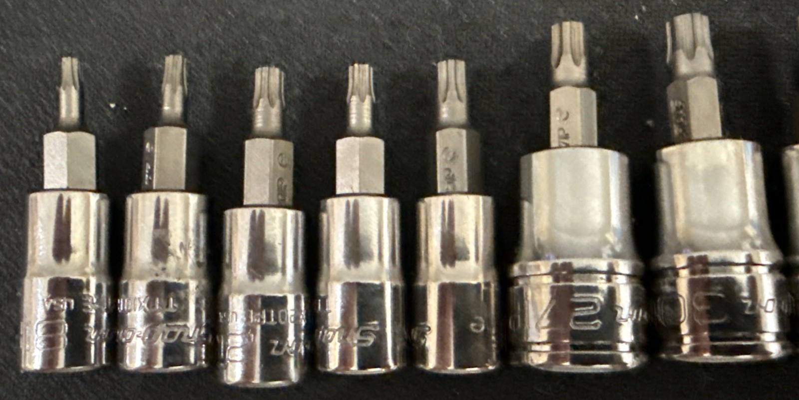 Snap On 211EFTXTPY T8-T55 1/4” 3/8” Dr 11 Pc Torx Plus Bit Socket Set Like New