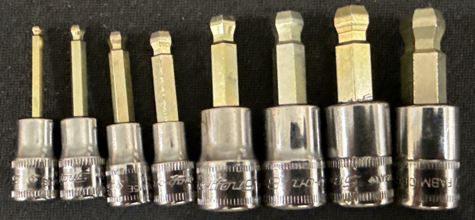 Snap-On 208EFTABMY 8pc 1/4" 3/8" Drive Metric Ball Hex Bit Socket Set Like New
