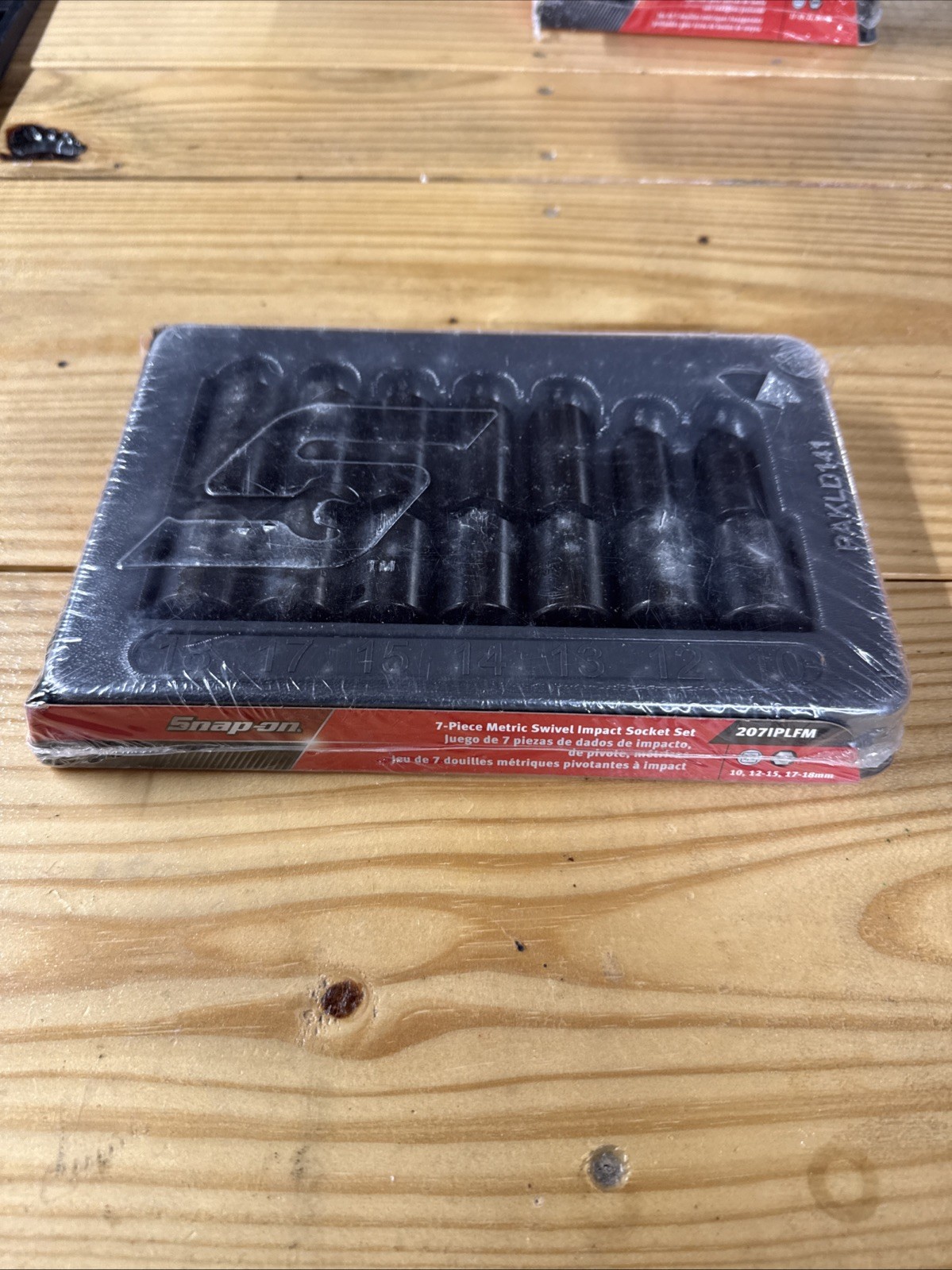 The NEW Snap-on™ 3/8" drive 10 18 mm 6point DEEP IMPACT Swivel Socket Set 207IPLFM is a high-quality set of automotive hand tools designed for professional use. Made by the reputable brand Snap-on, this set includes 7 sockets with a 18mm size and a 6 point drive type, perfect for various automotive maintenance and repair tasks. The sockets are impact sockets, built to withstand high torque and provide a secure grip on nuts and bolts. The deep impact design ensures a reliable performance while the swivel feature adds flexibility and ease of use. This product is a valuable addition to any mechanic's toolbox, offering durability and precision in one convenient set.
