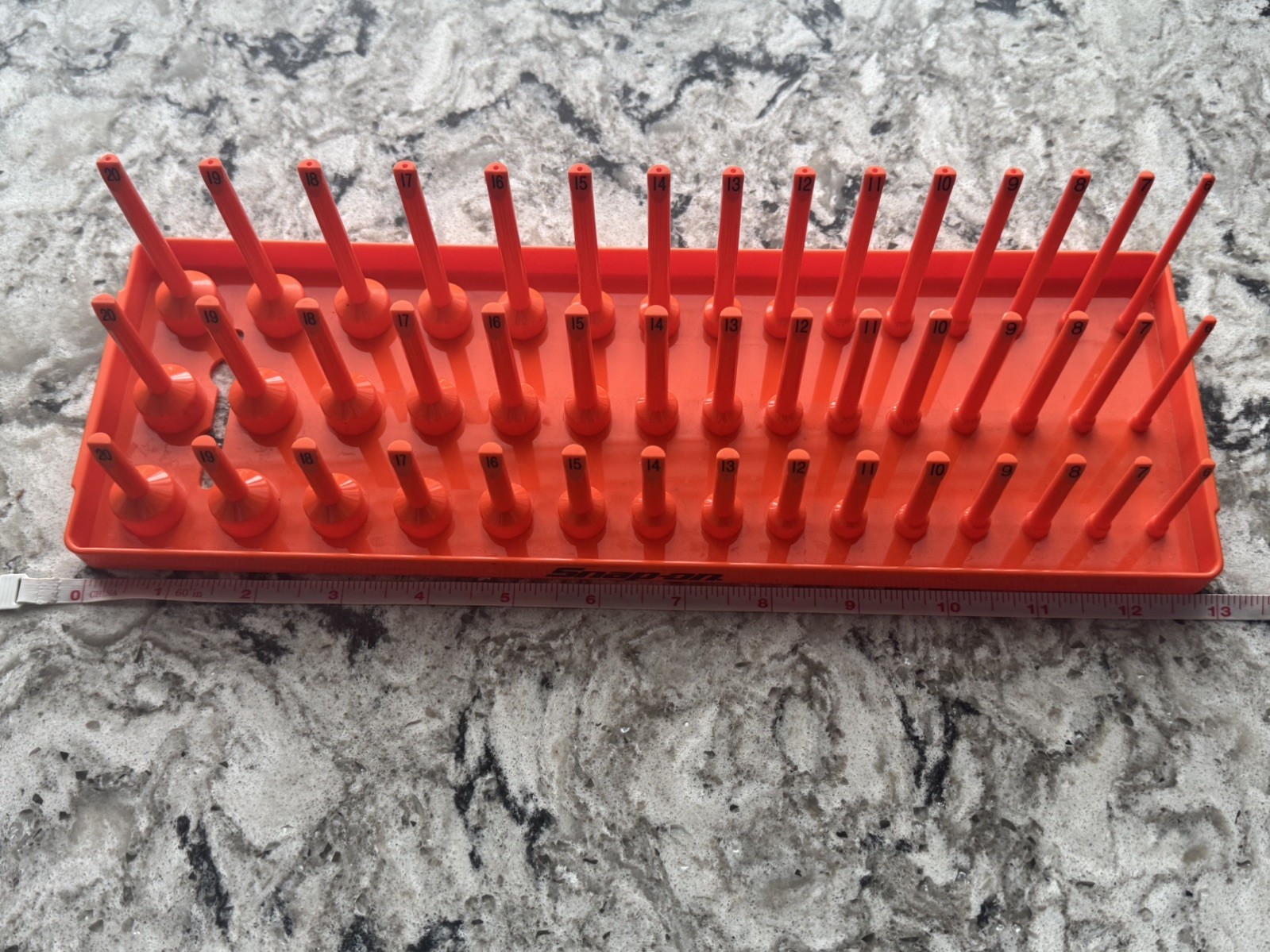 Snap On 3/8" Metric 3-Row Post-Style Socket Tray (Electric Orange)