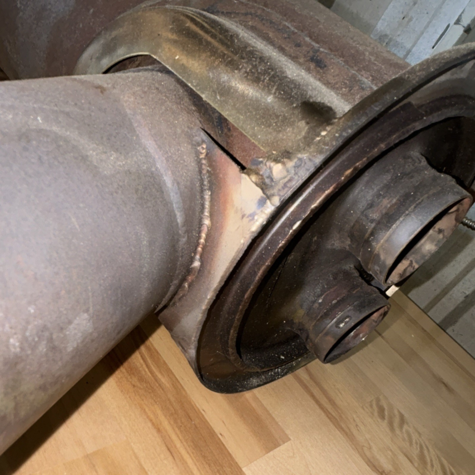 No paper work in repairable condition small crack extending from tailpipe mounting bracket no other damage noted.