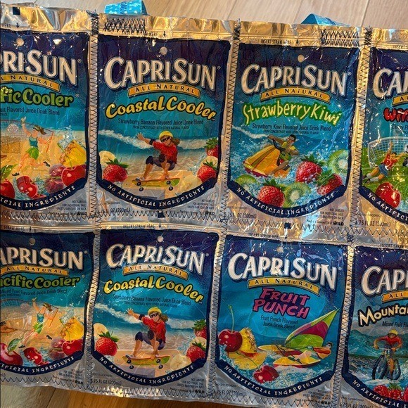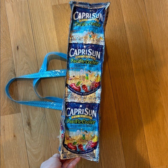 Tags: Capri Sun, nostalgia, pacific cooler, juice pouches, maximalism, one of a kind, wearable art, 90s, kidcore