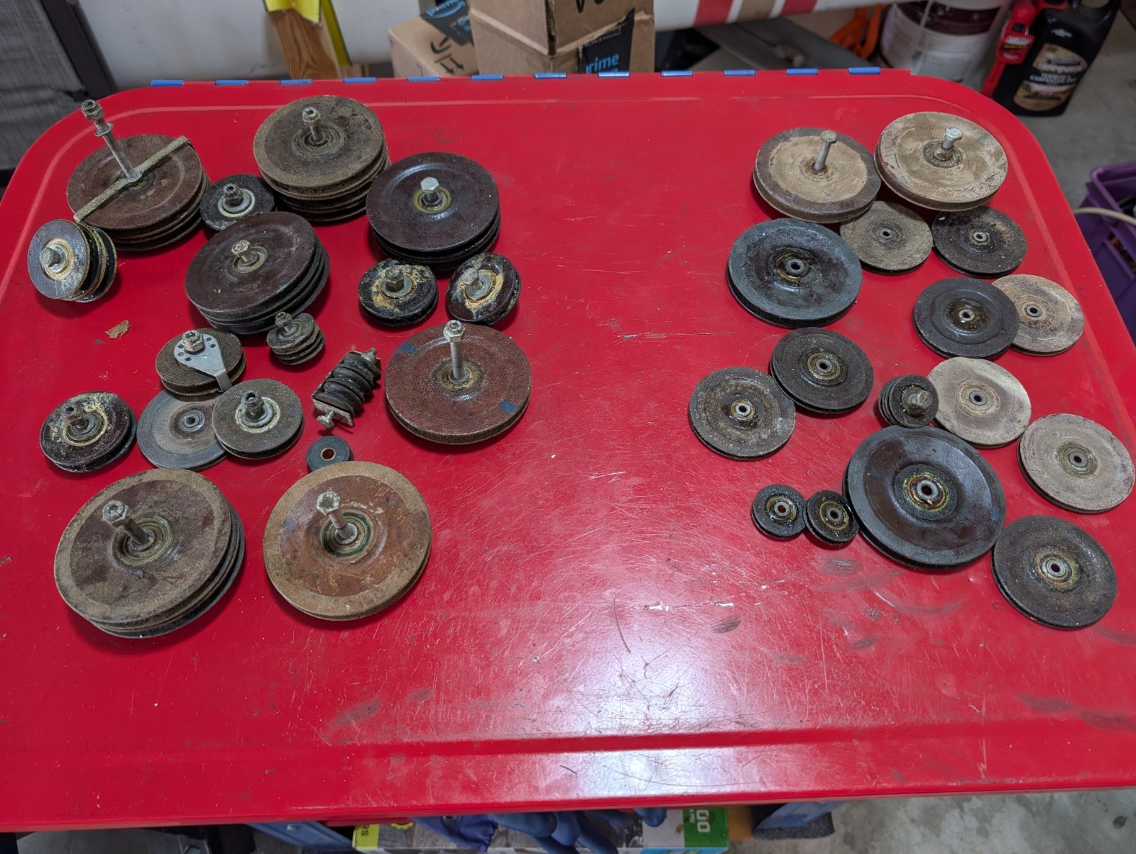 Pulled from a 1956 Cessna 172 SN 29333. The parts on the left seem to be free, the parts on the right are stuck/gummed up (main pic). Sold for parts only. Some brackets and bolts.