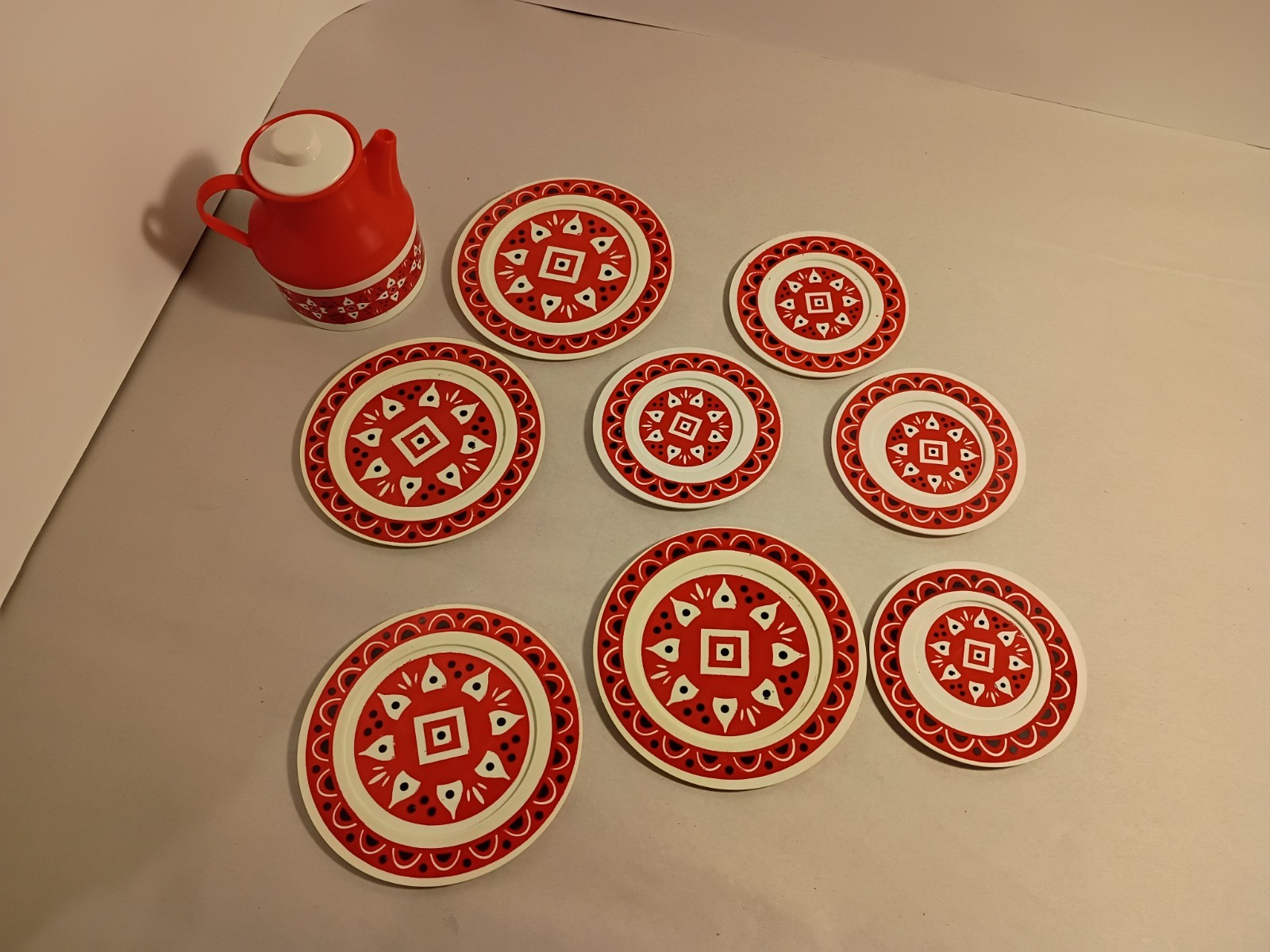 Vtg Chilton Playset Children's Tea Set Red/White Lot of 9 Pcs Made In USA
