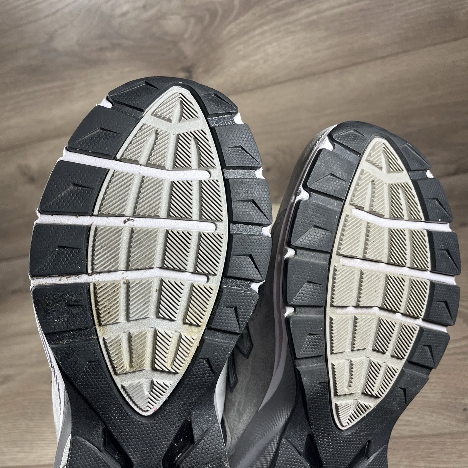 Shoes are in pre owned condition. Some dirt on the uppers from use. Soles show some wear but still have tread left.